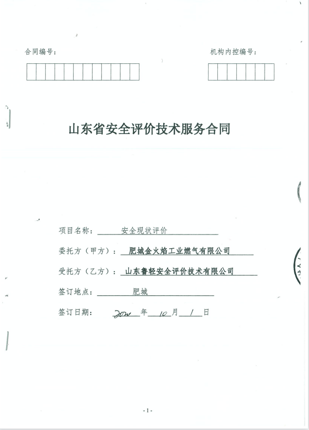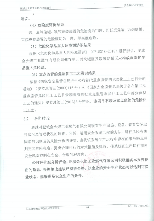 肥城金火焰工业燃气有限公司安全现状评价