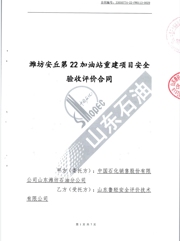 中国石化销售股份有限公司山东潍坊安丘第二十二加油站改建项目安全验收评价报告