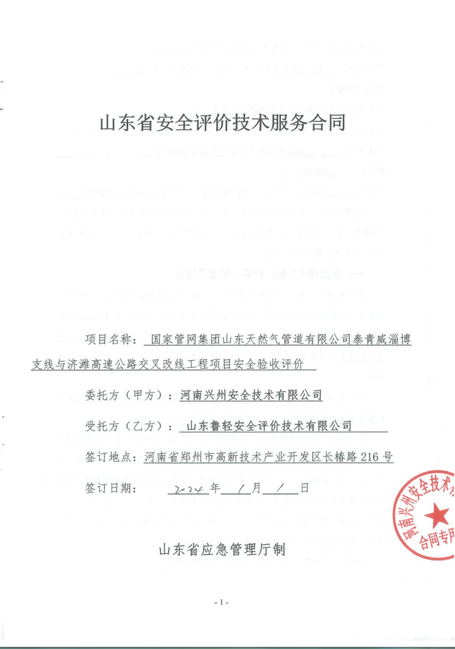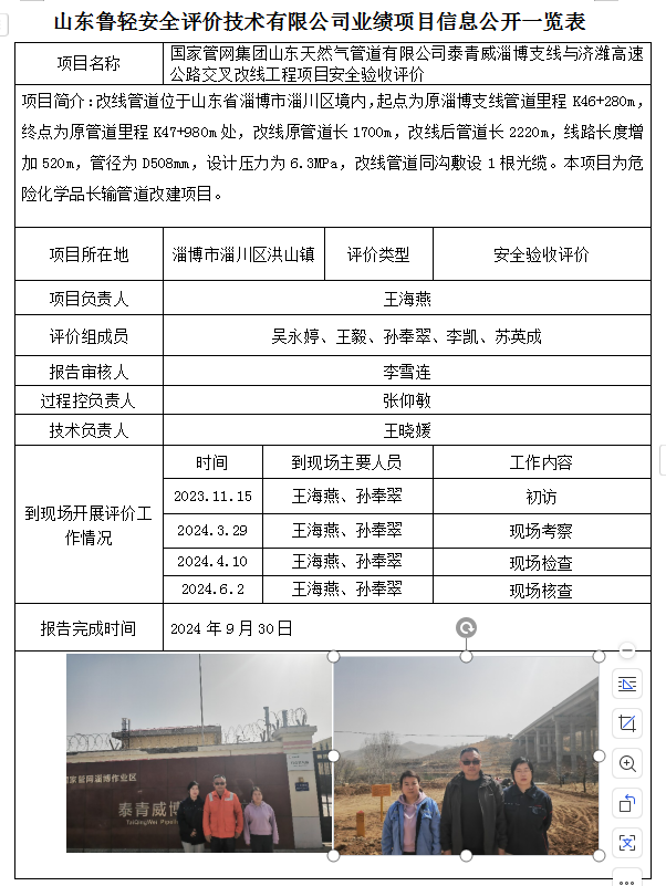 国家管网集团山东天然气管道有限公司泰青威淄博支线与济潍高速公路交叉改线工程项目安全验收评价