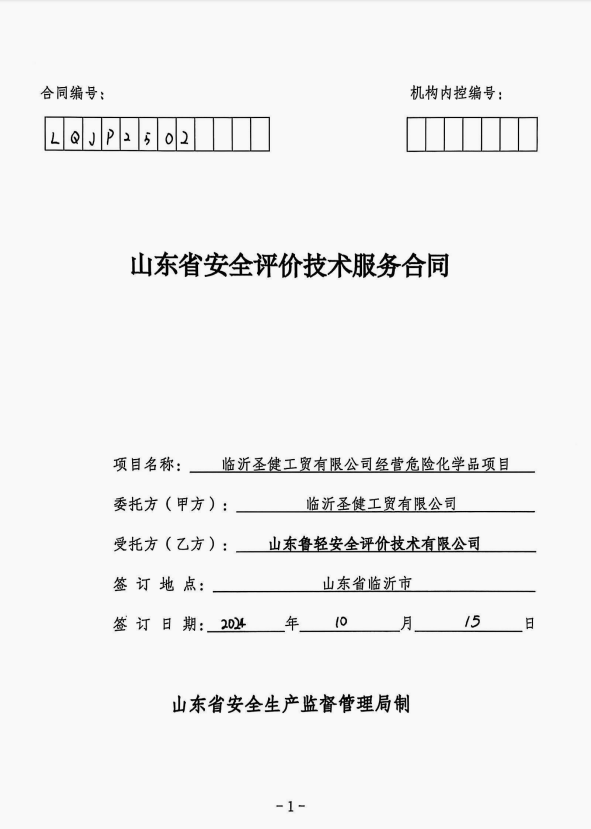 临沂圣健工贸有限公司经营危险化学品安全评价报告