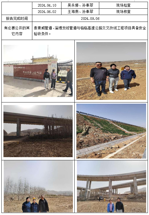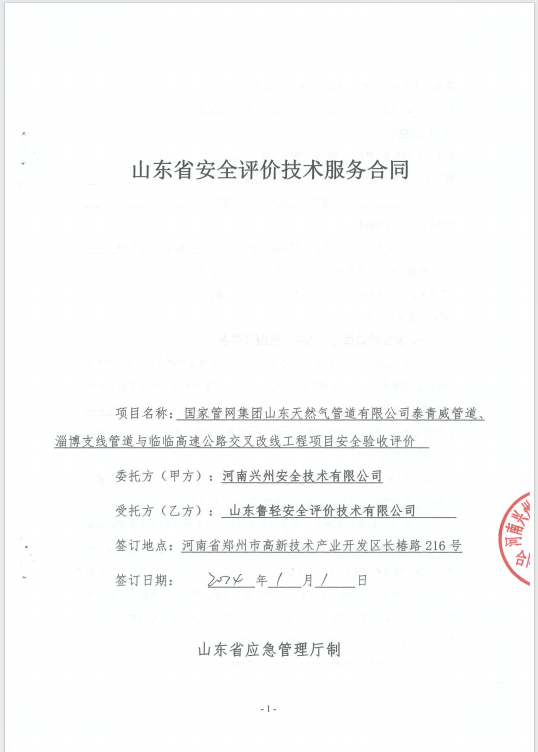 国家管网集团山东天然气管道有限公司泰青威管道、淄博支线管道与临临高速公路交叉改线工程项目安全验收评价