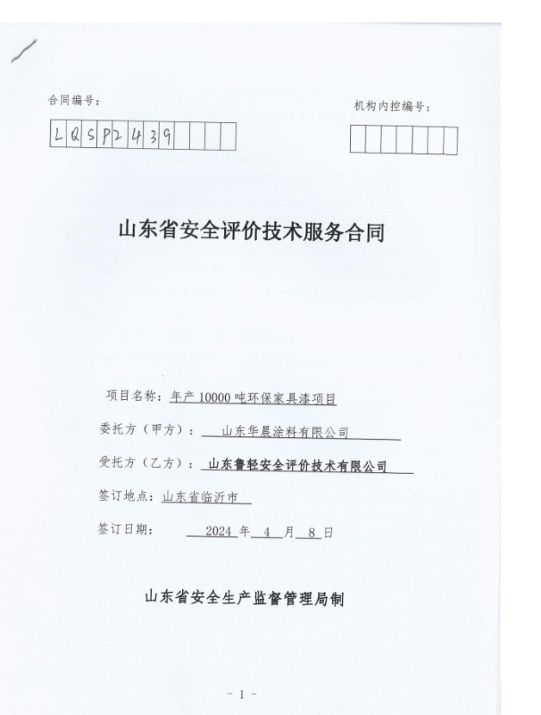 山东华晨涂料有限公司年产 10000 吨环保家具漆项目安全设施竣工验收评价报告