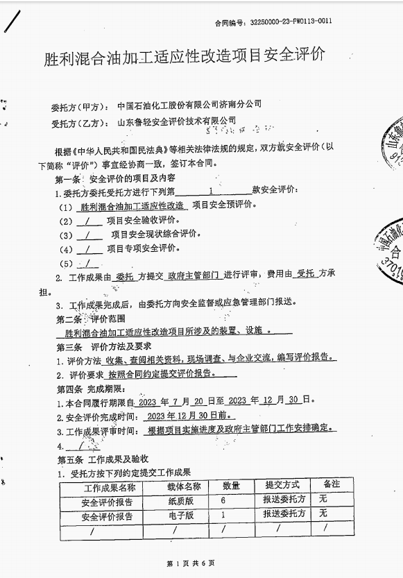 中国石油化工股份有限公司济南分公司胜利油加工适应性改造项目设立评价