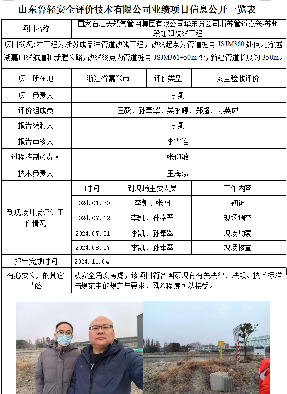 国家石油天然气管网集团有限公司华东分公司浙苏管道嘉兴-苏州段虹阳改线工程