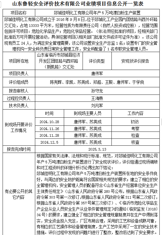 郯城佳明化工有限公司年产5万吨漂白粉生产装置