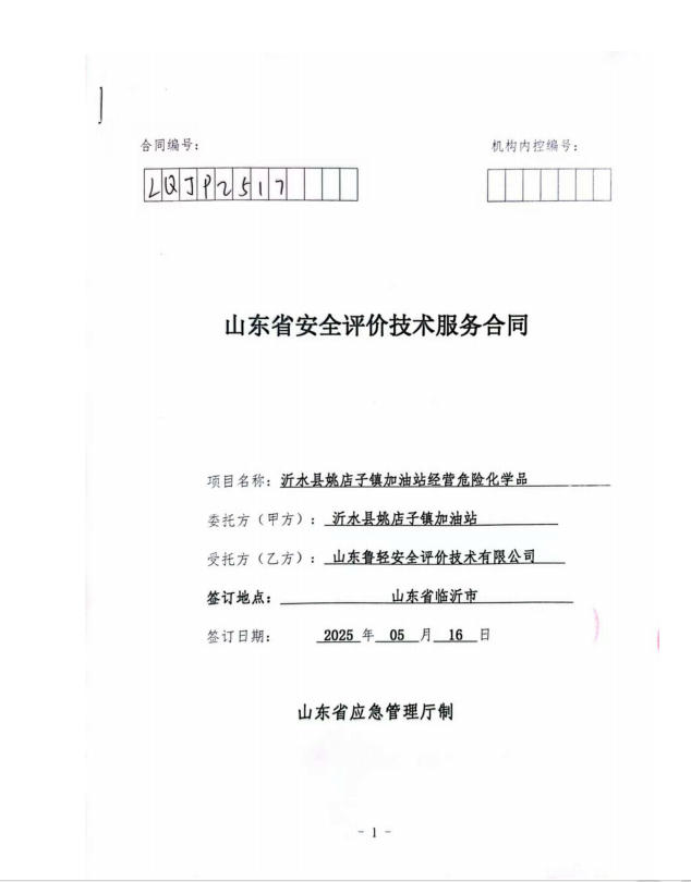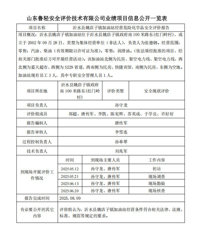 沂水县姚店子镇加油站经营危险化学品安全评价报告