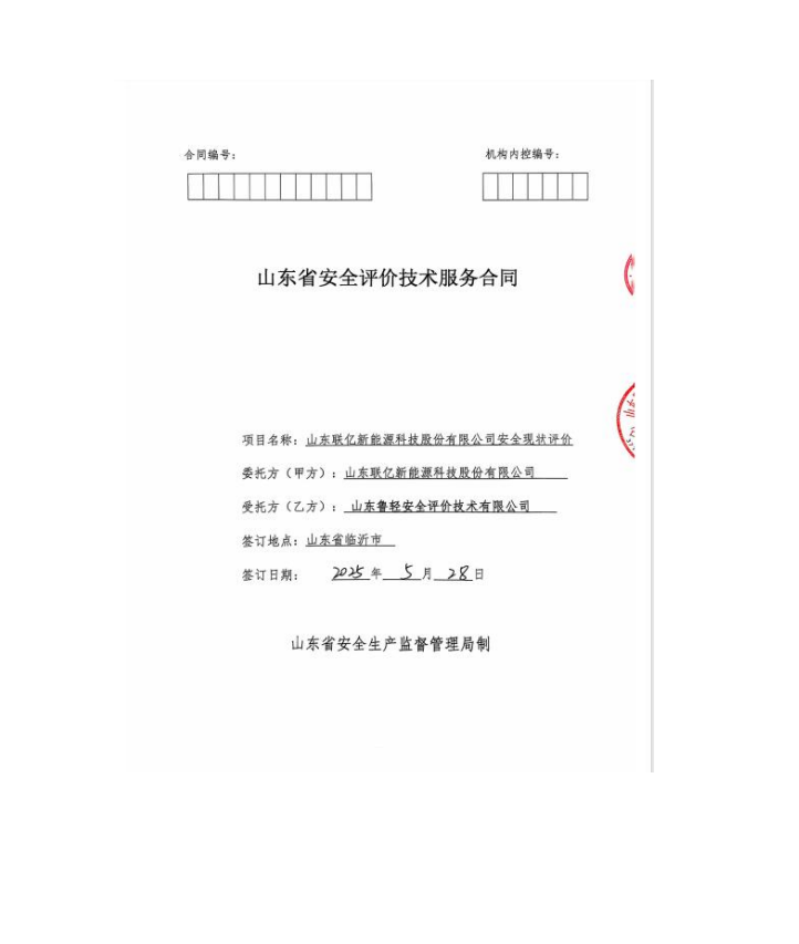 山东联亿新能源科技股份有限安全现状评价报告