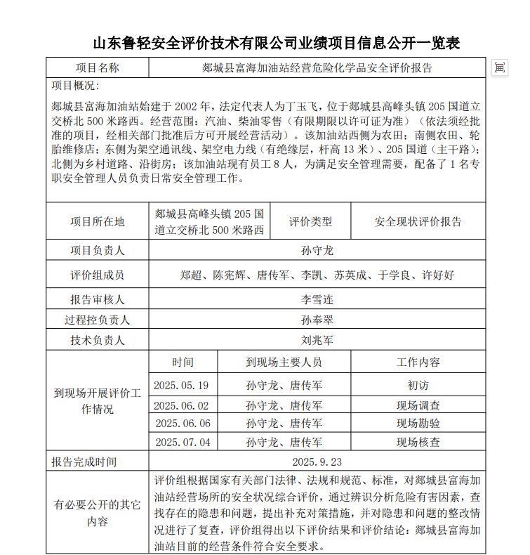 郯城县富海加油站经营危险化学品安全评价报告