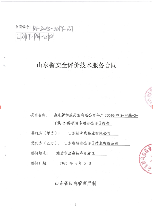 山东新和成药业有限公司年产 23500 吨 2-甲基-3-丁炔-2-醇项目专项安全评价报告