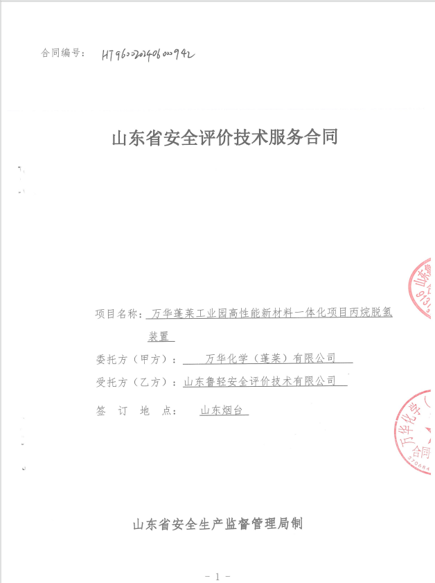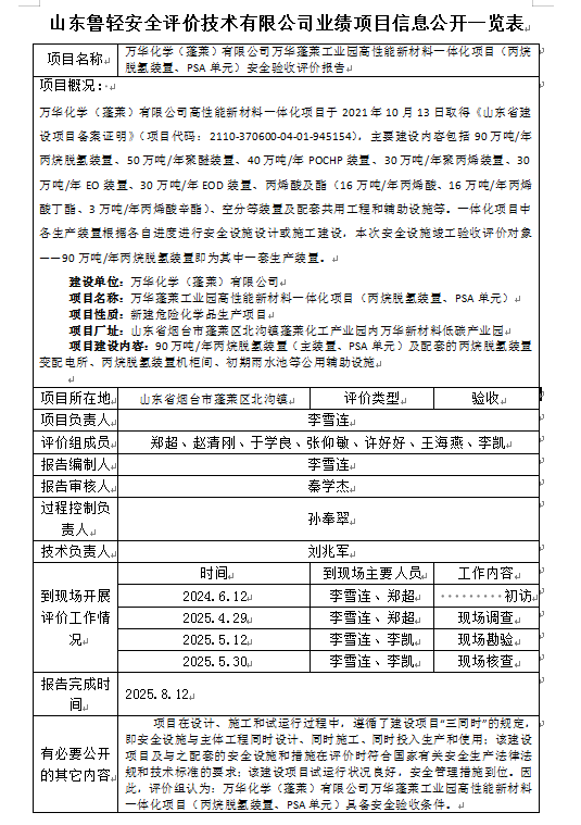 万华化学(蓬莱)有限公司万华蓬莱业园高性能新材料一体化项目(丙烷脱氢装置、P工SA单元)安全验收评价报告置、PSA单元)安全验收评价报告