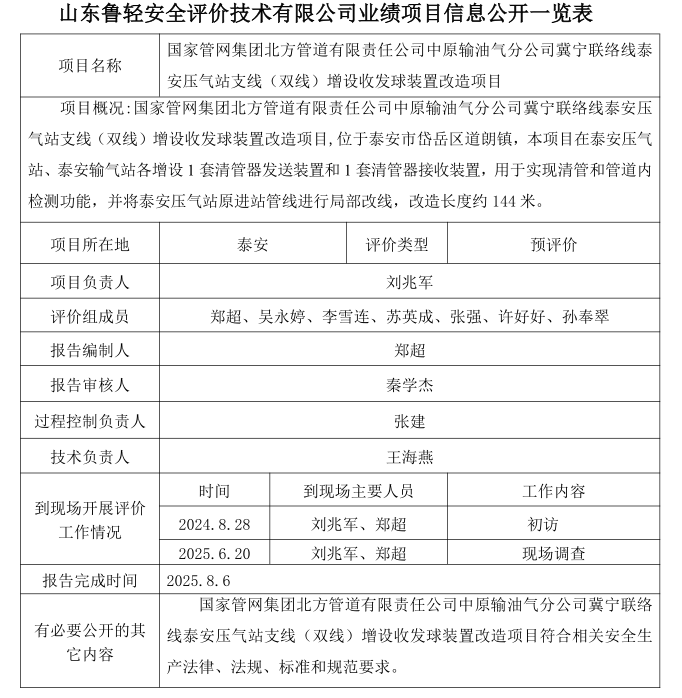 国家管网集团北方管道有限责任公司中原输油气分公司冀宁联络线泰安压气站支线(双线)增设收发球装置改造项目
