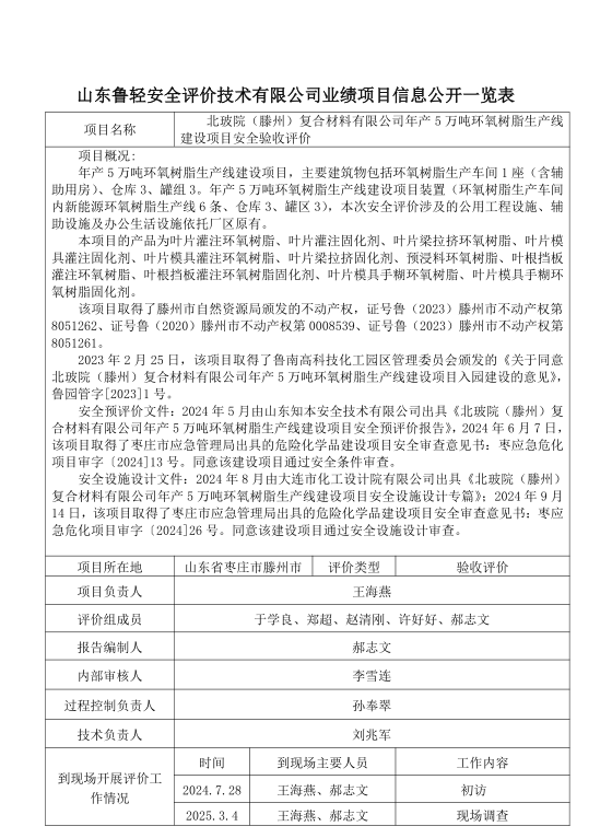 北玻院(滕州)复合材料有限公司年产5万吨环氧树脂生产线建设项目安全验收评价