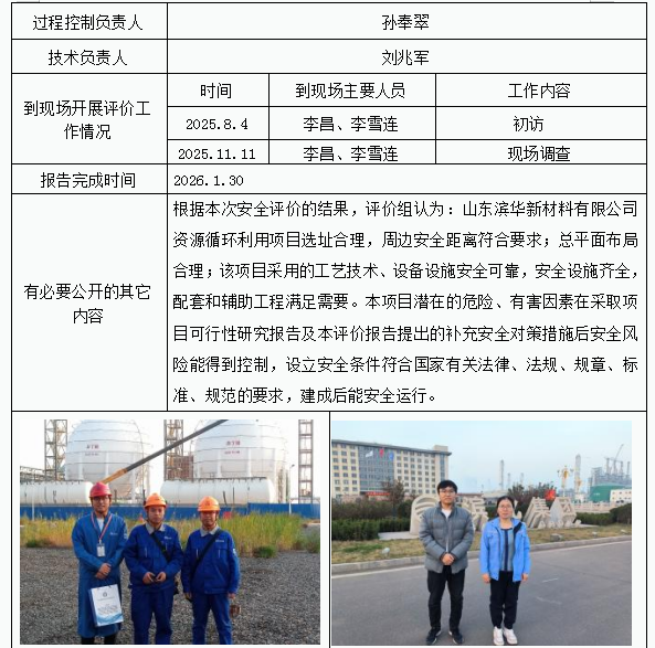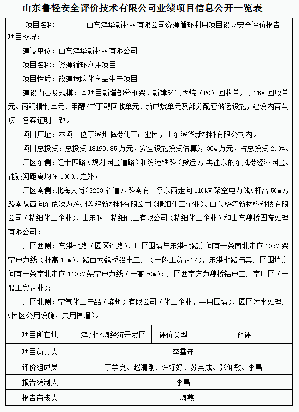 山东滨华新材料有限公司资源循环利用项目设立安全评价报告