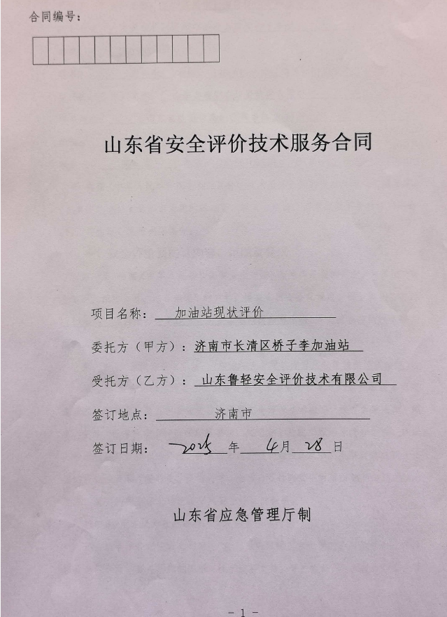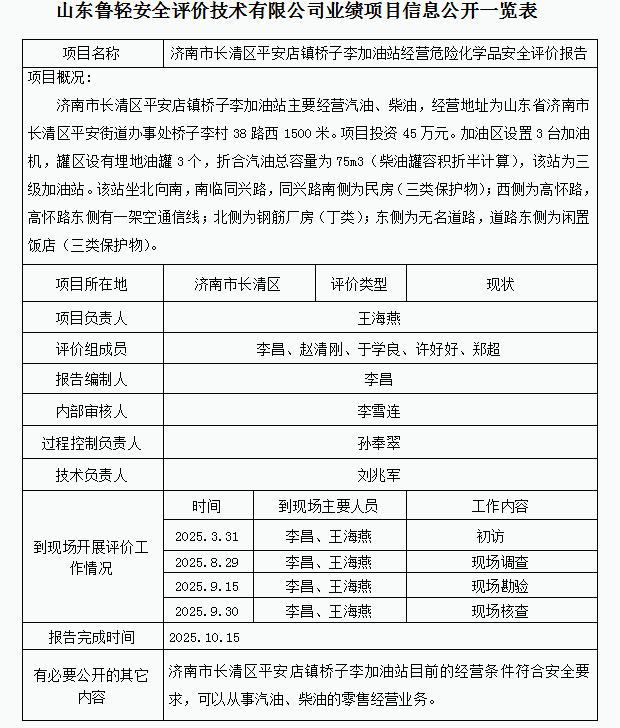 济南市长清区平安店镇桥子李加油站经营危险化学品安全评价报告