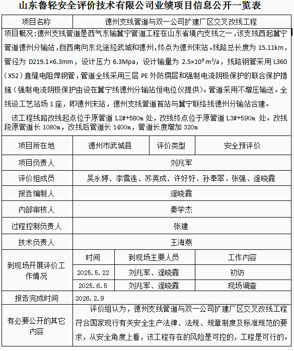 德州支线管道与双一公司扩建厂区交叉改线工程