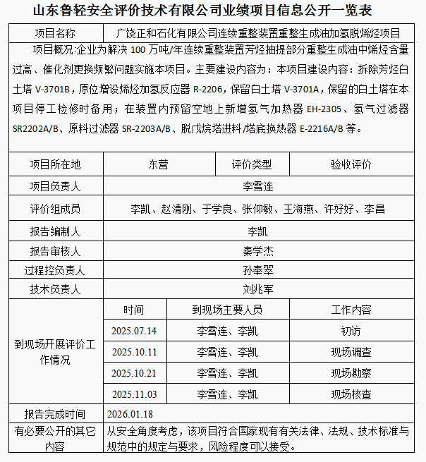广饶正和石化有限公司连续重整装置重整生成油加氢脱烯烃项目
