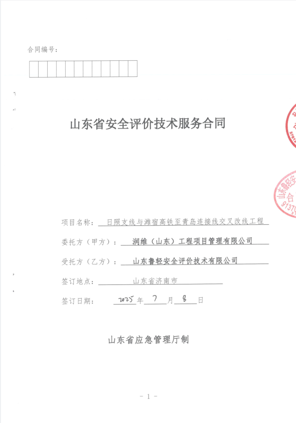 国家管网集团山东天然气管道有限公司日照支线与潍宿高铁至青岛连接线交叉改线工程安全评价