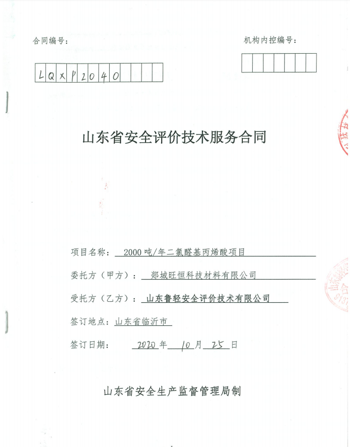 郯城旺恒科技材料有限公司2000吨/年二氯醛基丙烯酸项目