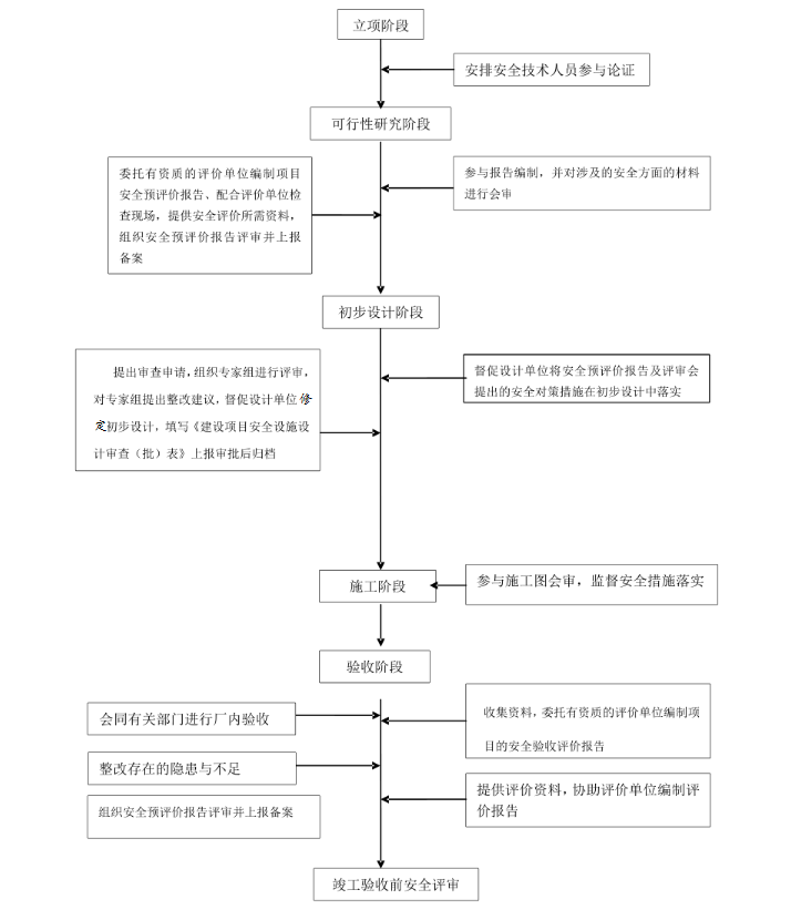 安全三同时是指生产经营单位新建、改建、扩建工程项目的安全设施,必须与主体工程同时设计、同时施工、同时投入生产和使用。流程如下: