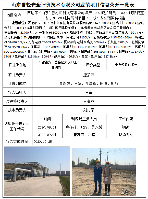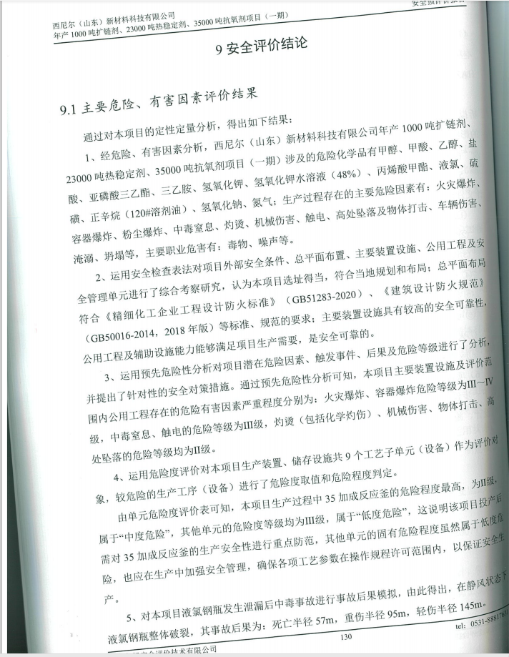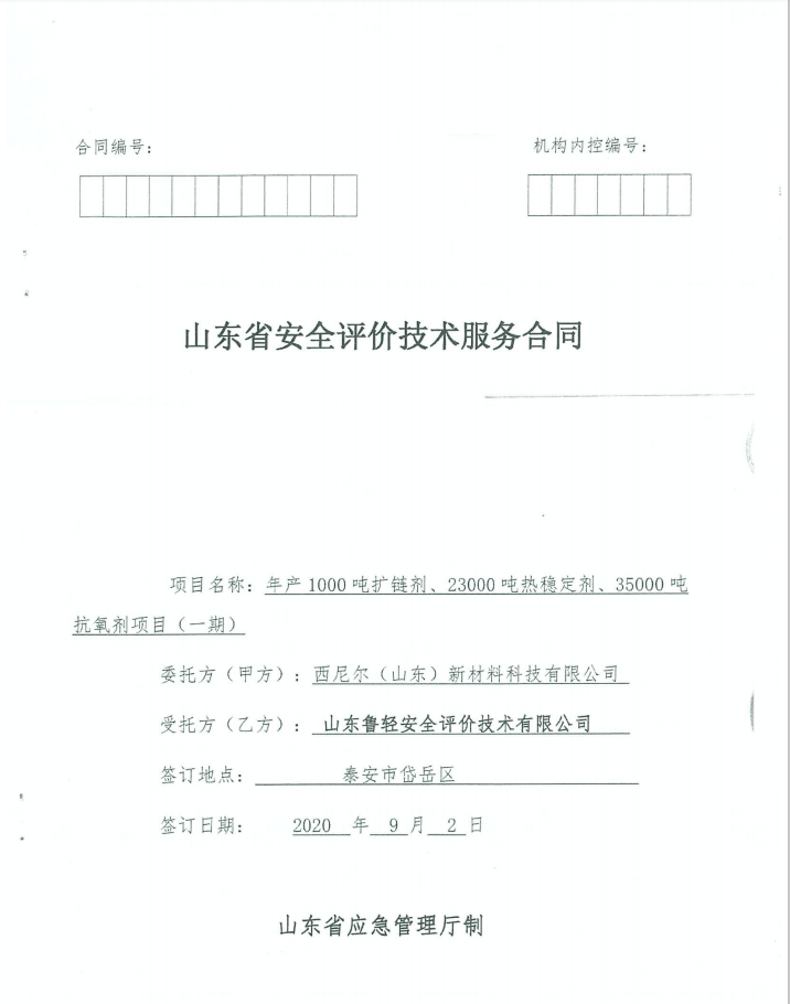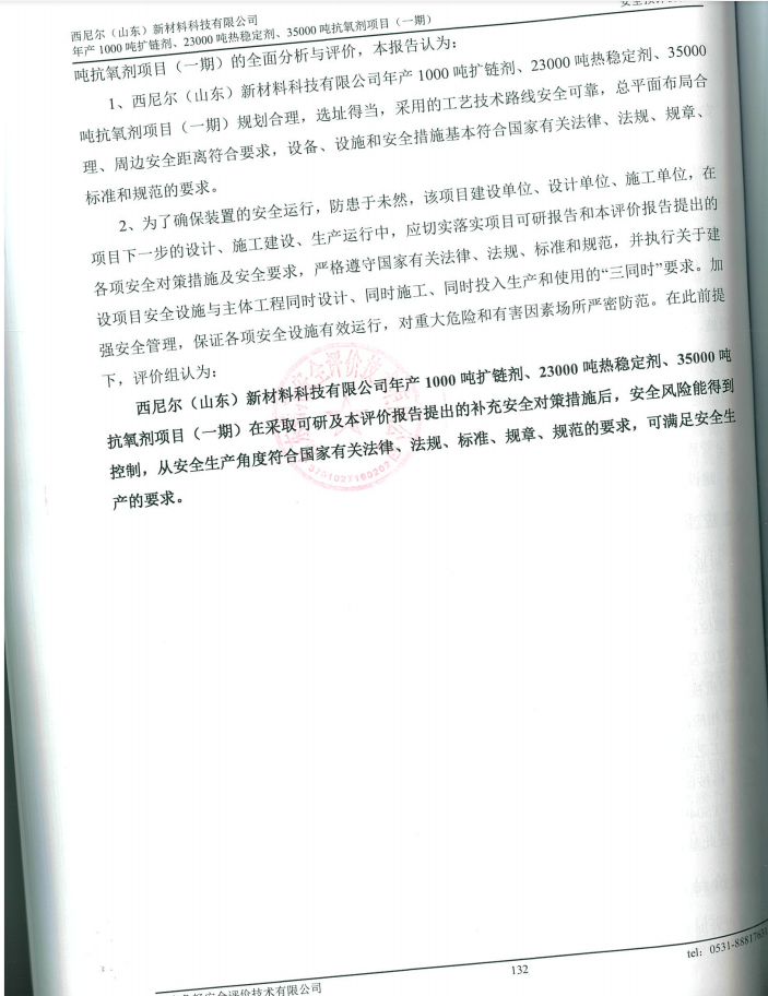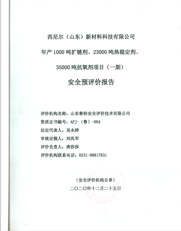 西尼尔(山东)新材料科技有限公司年产1000吨扩链剂、23000吨热稳定剂、35000吨抗氧剂项目(一期)安全预评价报告
