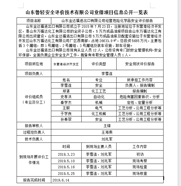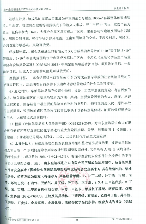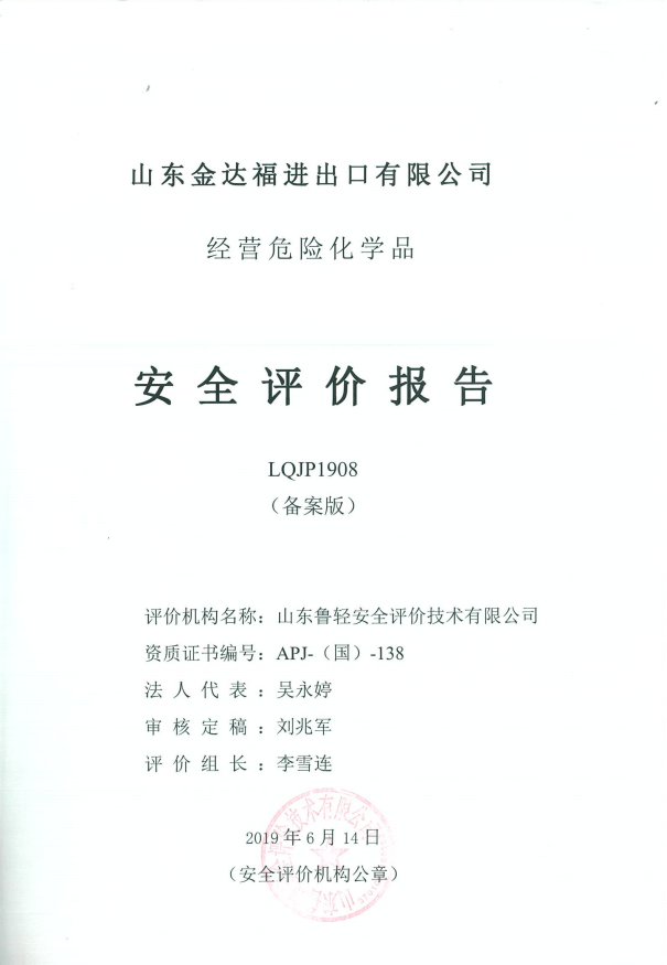 山东金达福进出口有限公司经营危险化学品安全评价报告