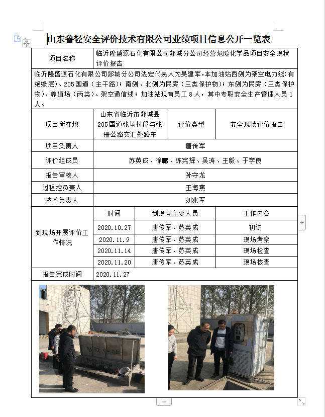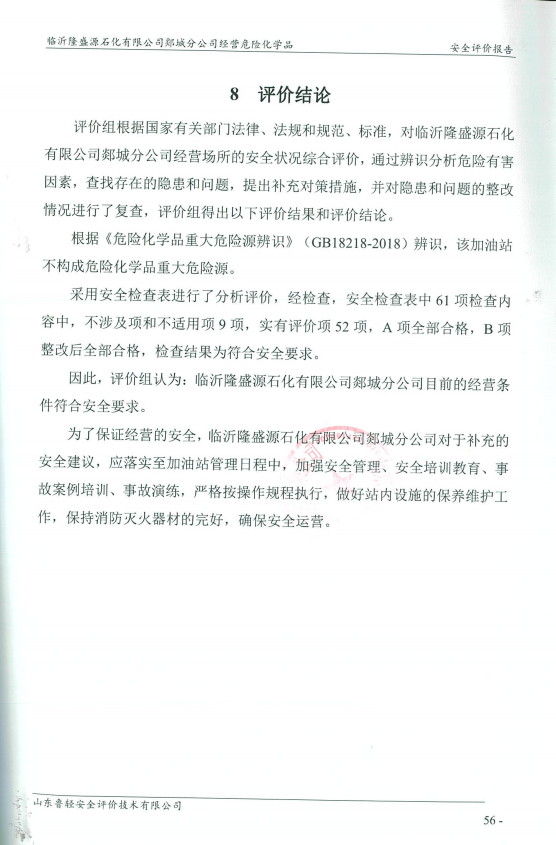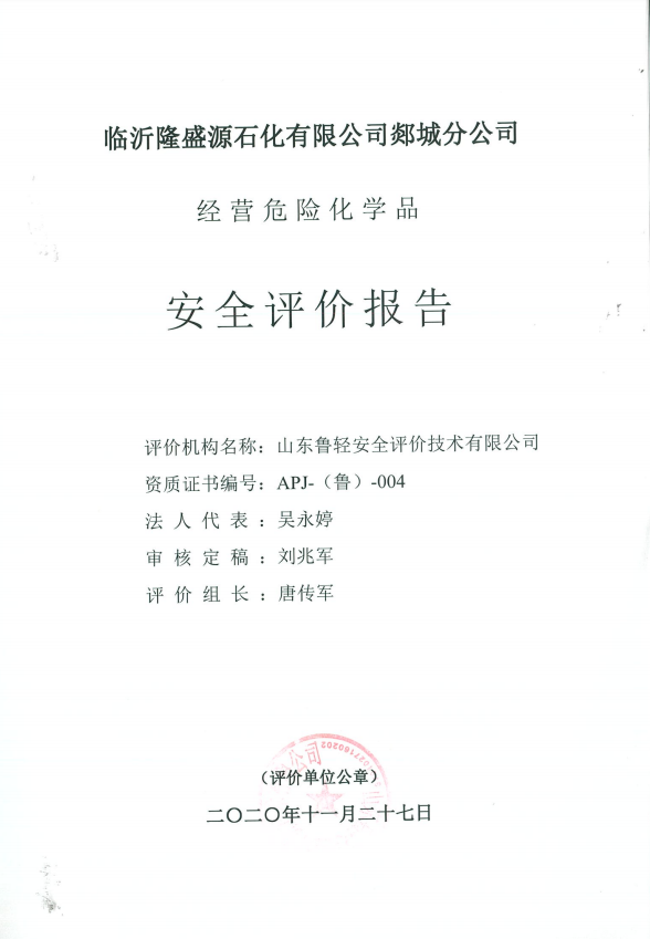 临沂隆盛源石化有限公司郯城分公司经营危险化学品项目安全现状评价报告