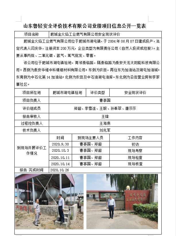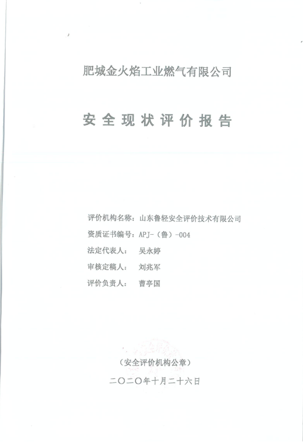 肥城金火焰工业燃气有限公司安全现状评价