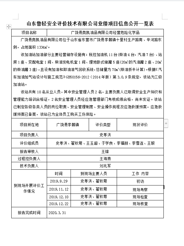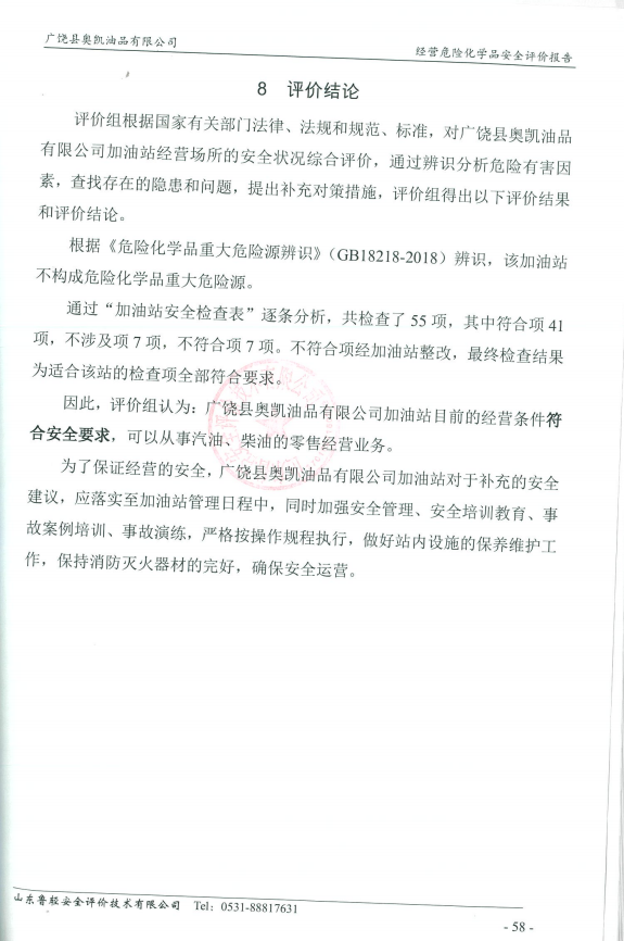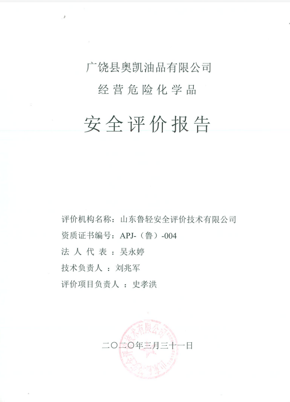广饶县奥凯油品有限公司经营危险化学品安全现状评价报告