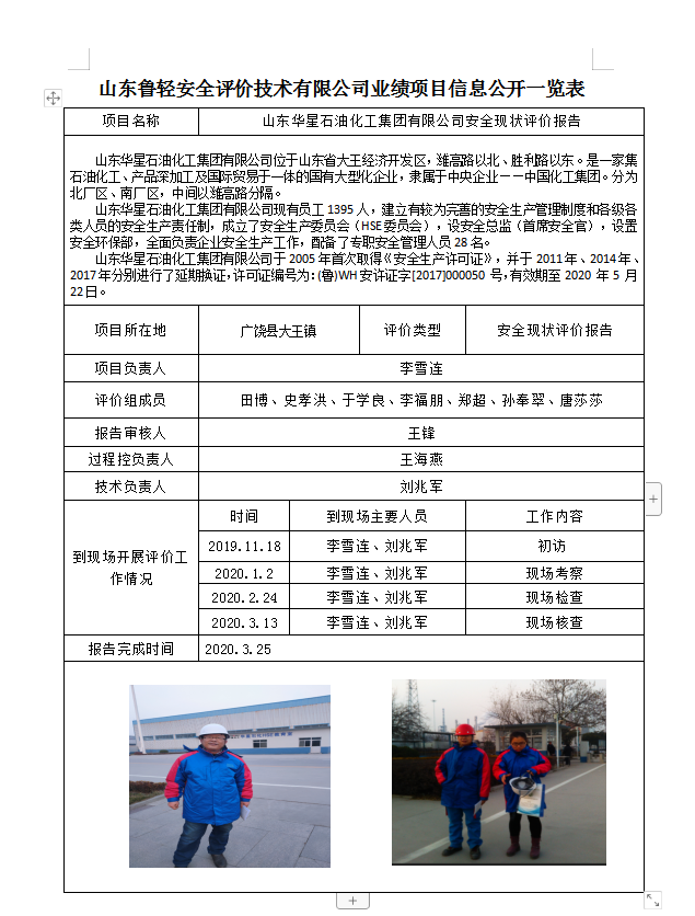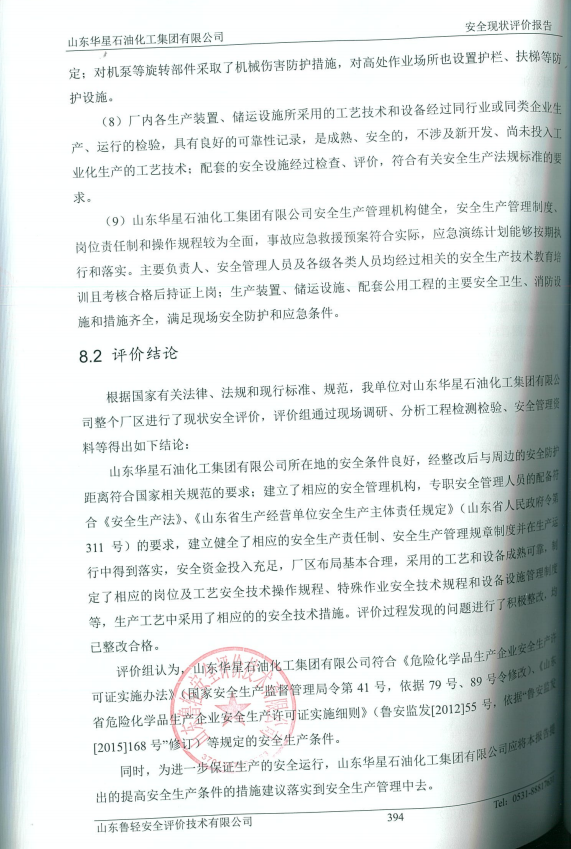 山东华星石油化工集团有限公司安全现状评价报告