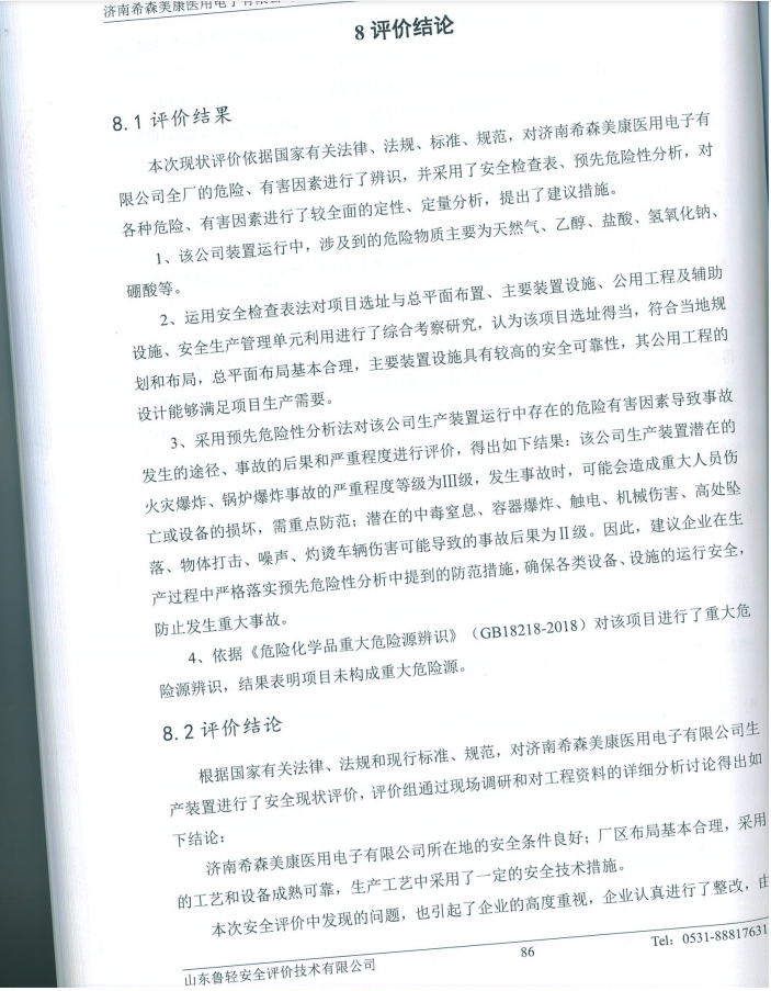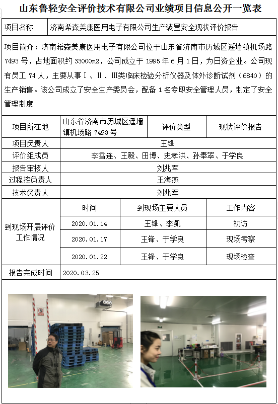 济南希森美康医用电子有限公司生产装置安全现状评价报告