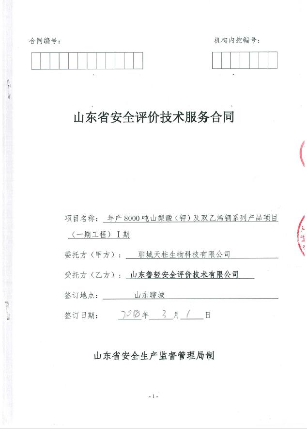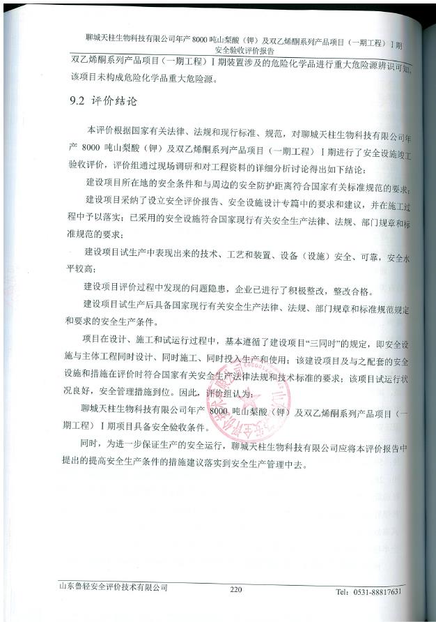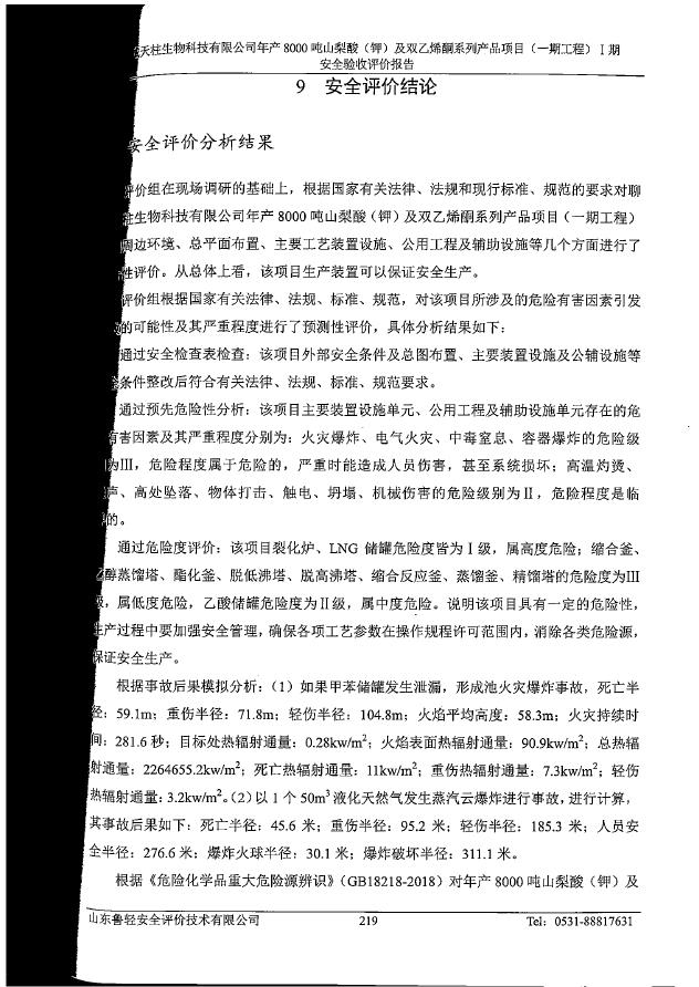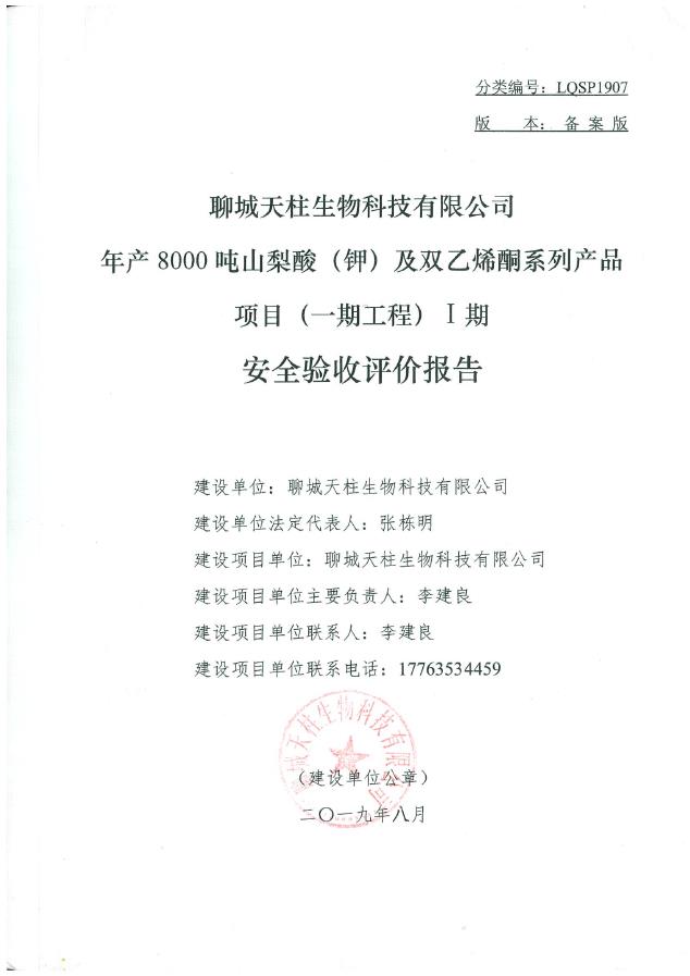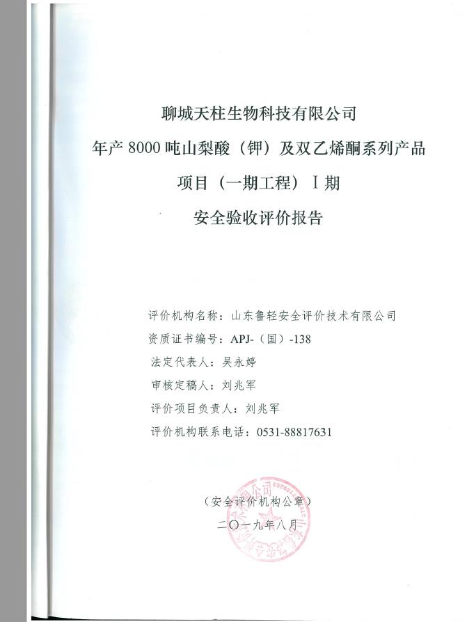 聊城天柱生物科技有限公司年产8000吨山梨酸(钾)及双乙烯酮系列产品项目(一期工程)Ⅰ期 |