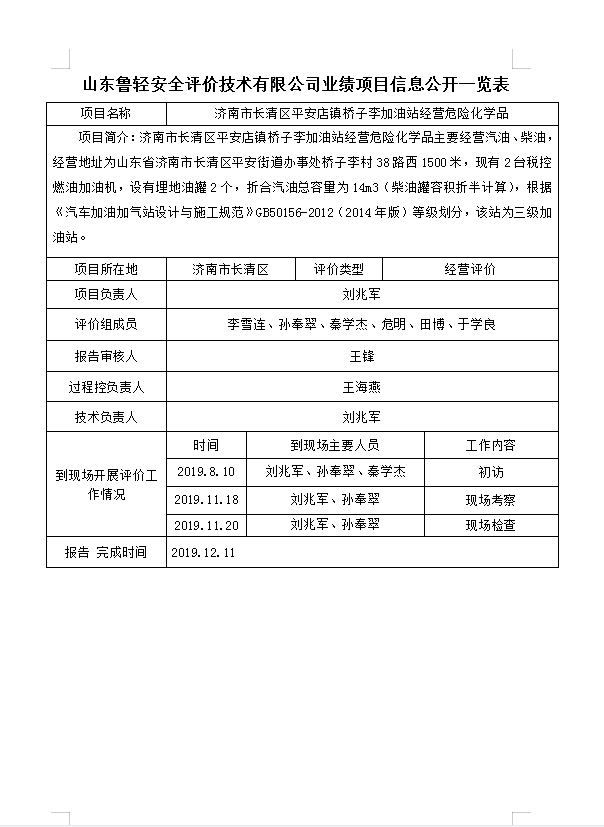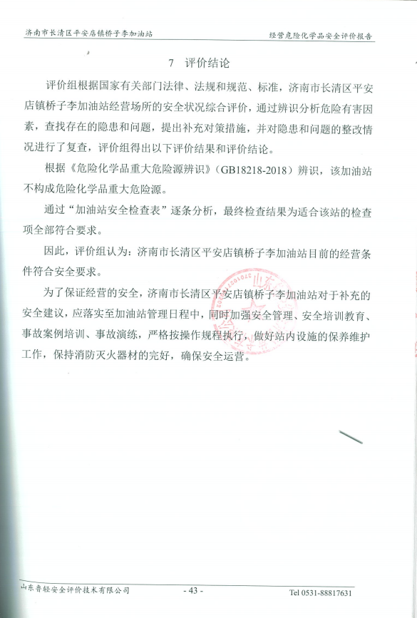 济南市长清区平安店镇桥子李加油站经营危险化学品