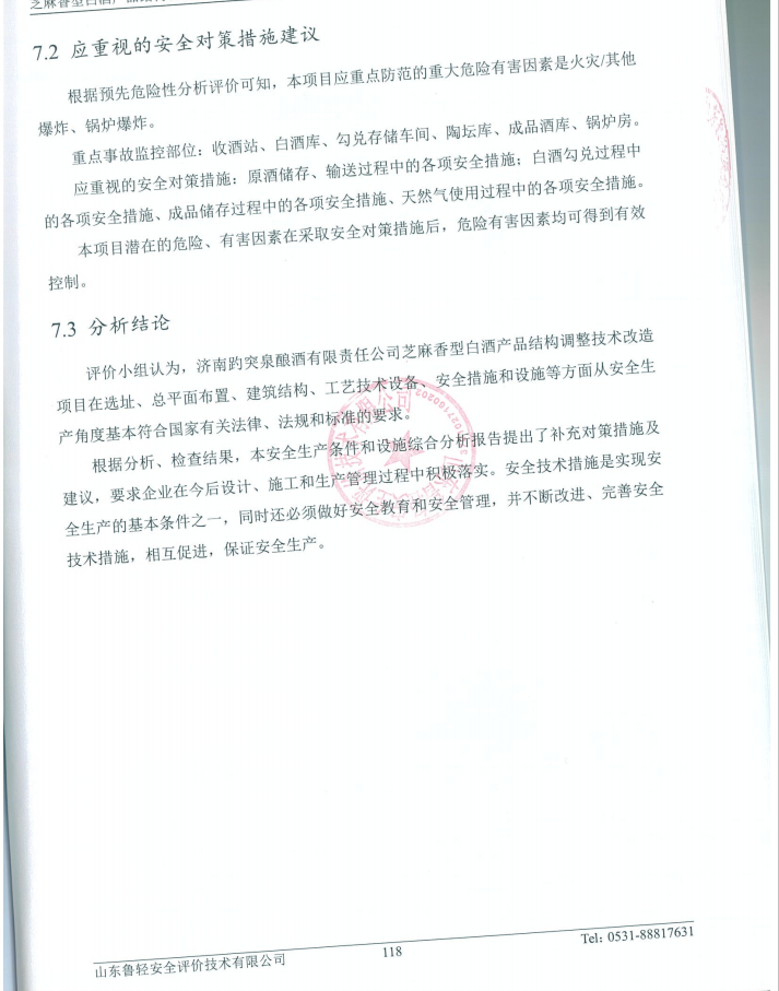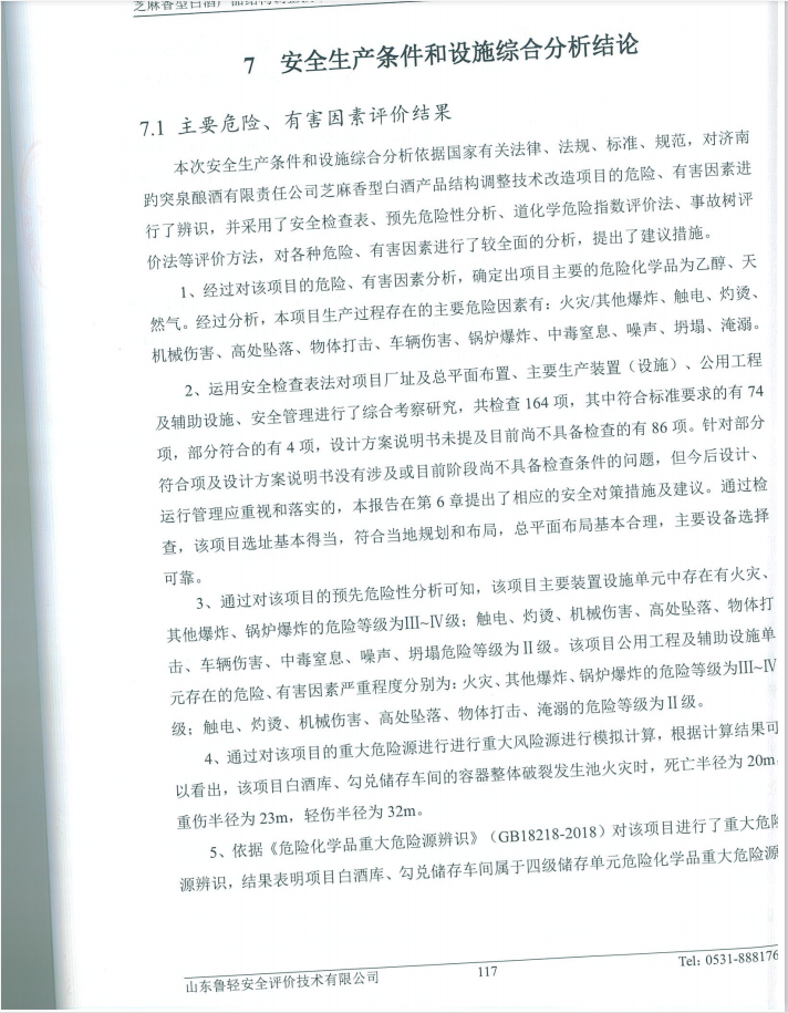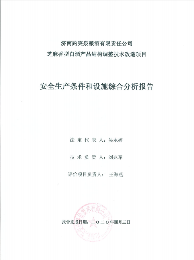 济南趵突泉酿酒有限责任公司芝麻香型白酒产品结构调整技术改造项目安全生产条件和设施综合分析报告