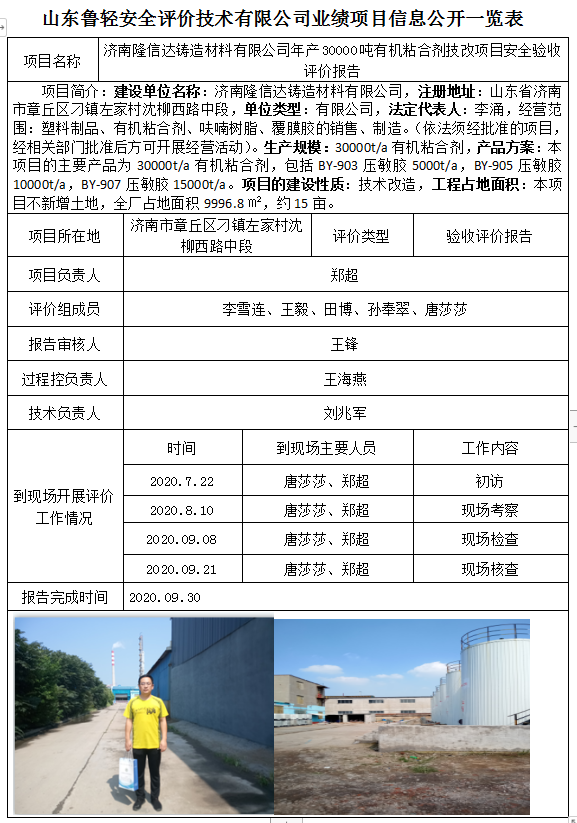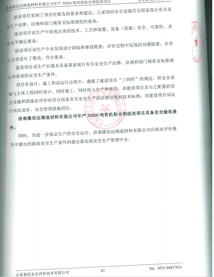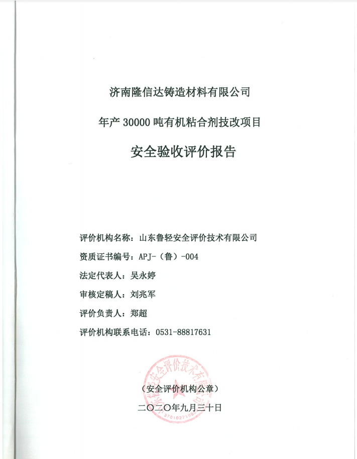 济南隆信达铸造材料有限公司年产30000吨有机粘合剂技改项目安全验收评价报告