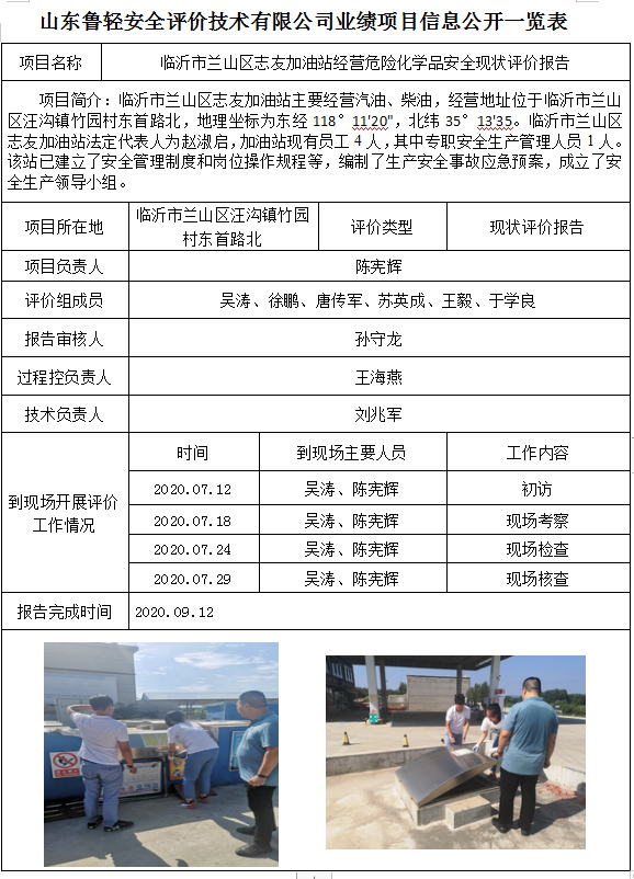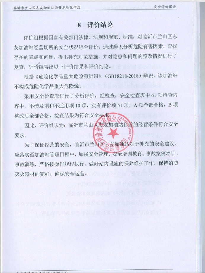 临沂市兰山区志友加油站经营危险化学品安全评价报告