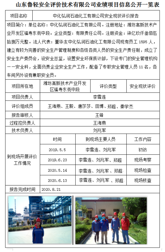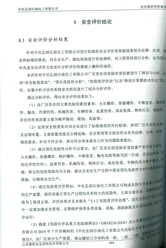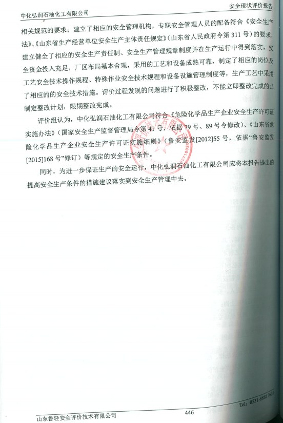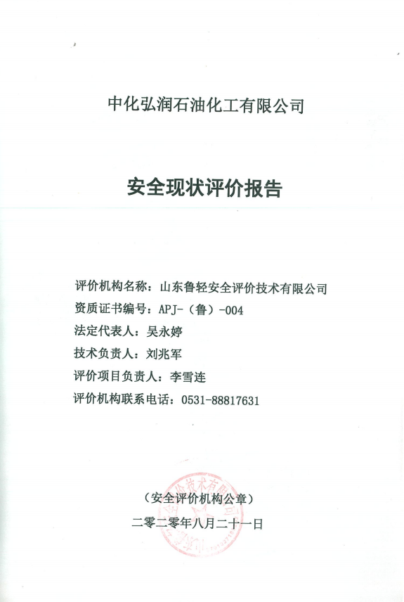 中化弘润石油化工有限公司安全现状评价报告