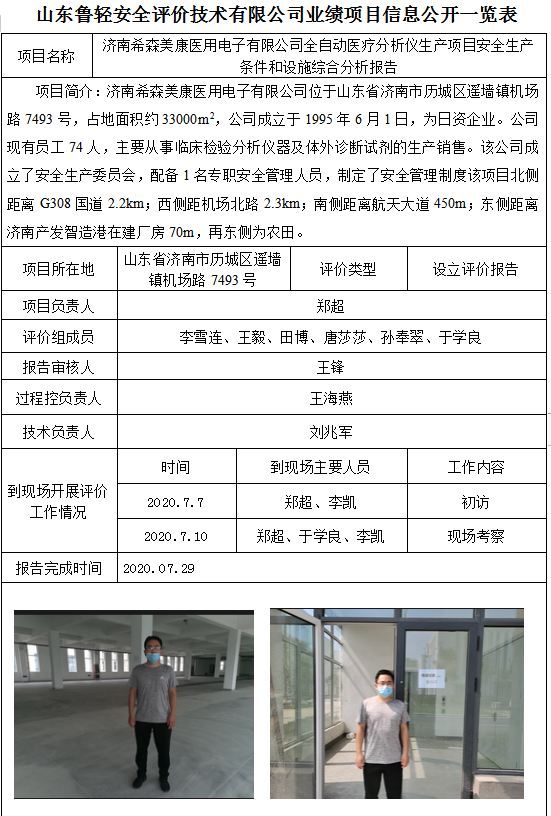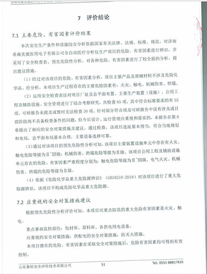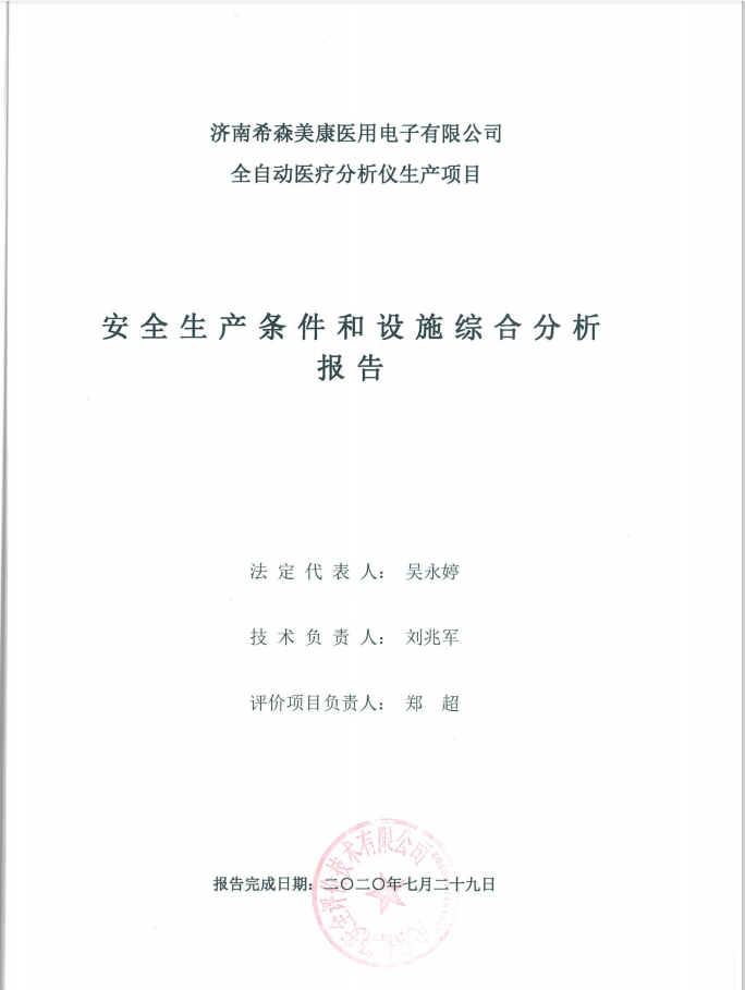 济南希森美康医用电子有限公司全自动医疗分析仪生产项目安全生产条件和设施综合分析报告