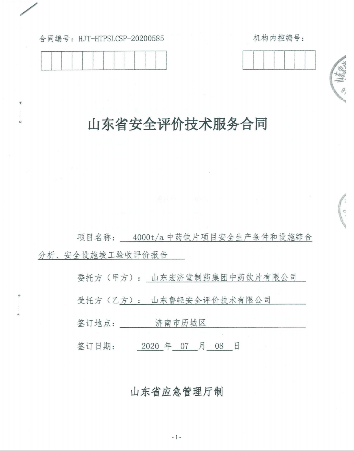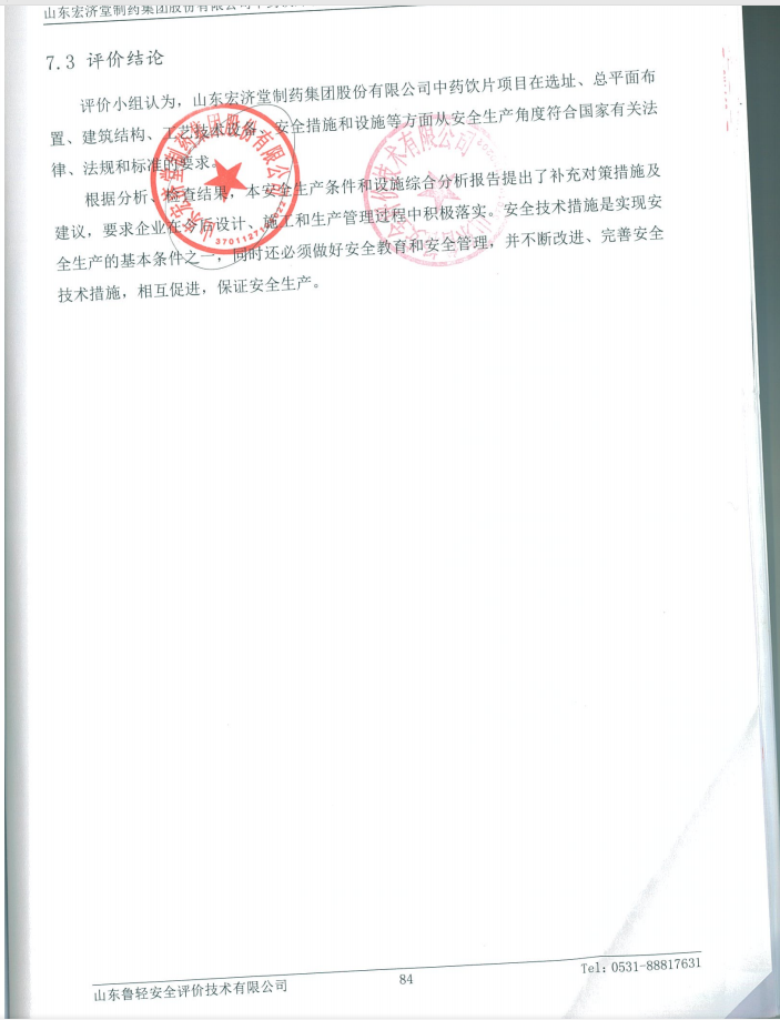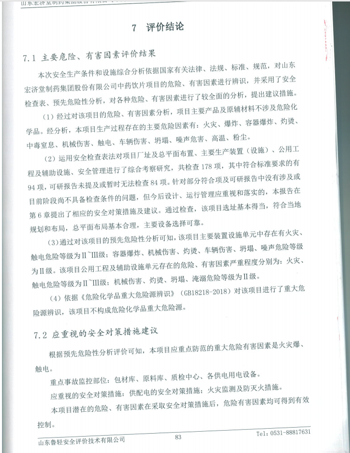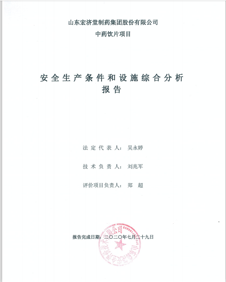 山东宏济堂制药集团中药饮片有限公司4000t/a中药饮片项目安全生产条件和设施综合分析、安全设施竣工验收评价报告