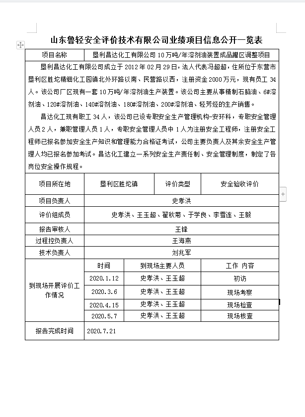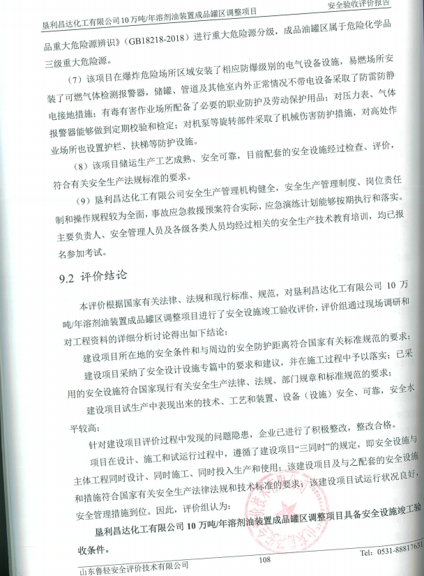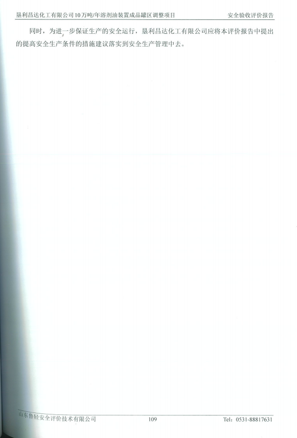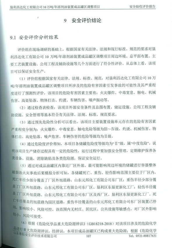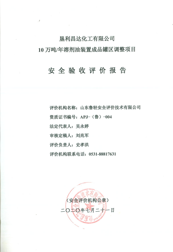 垦利昌达化工有限公司10万吨/年溶剂油装置成品罐区调整项目安全验收评价报告