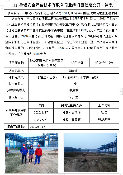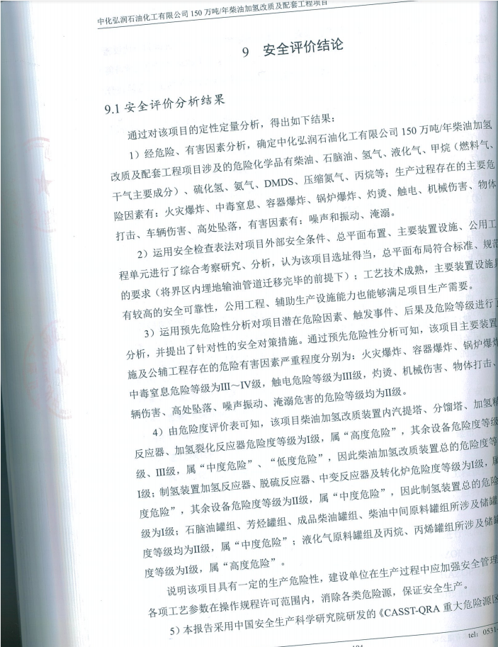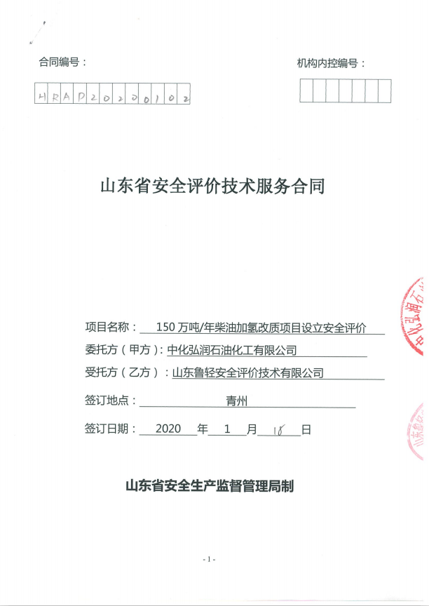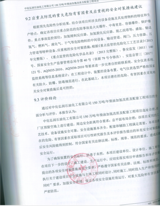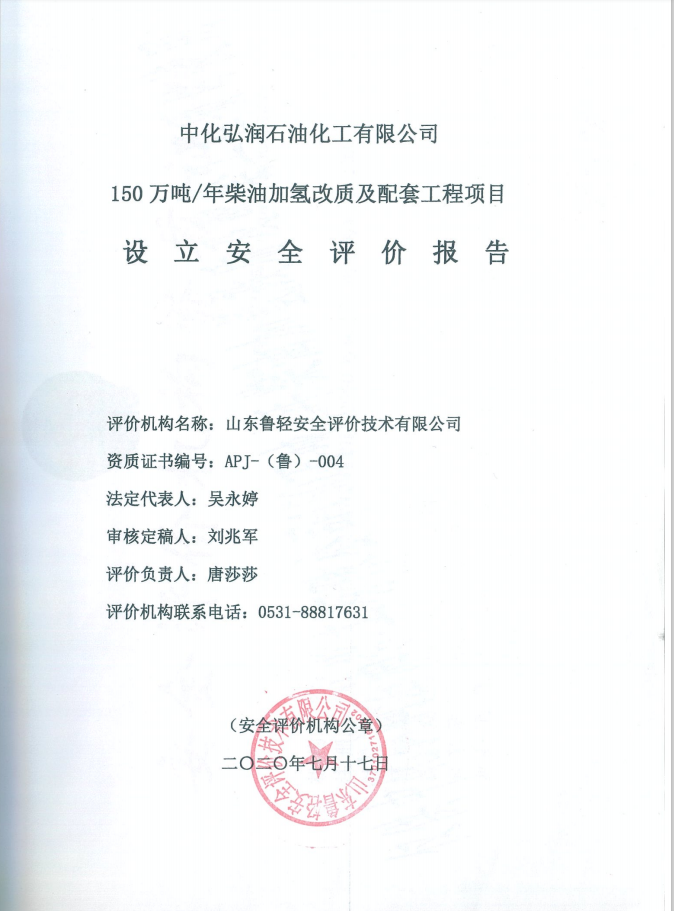 中化弘润石油化工有限公司150万吨/年柴油加氢改质及配套工程项目设立安全评价报告