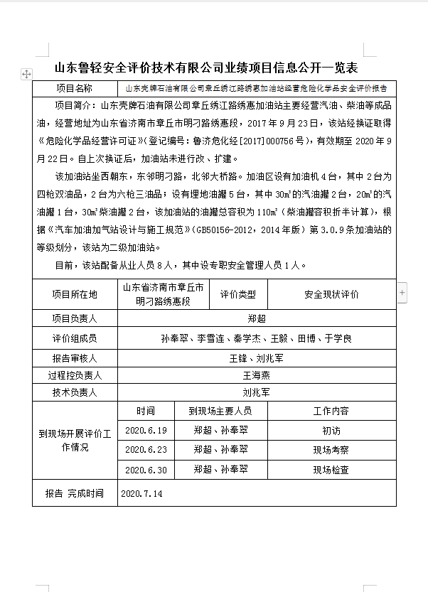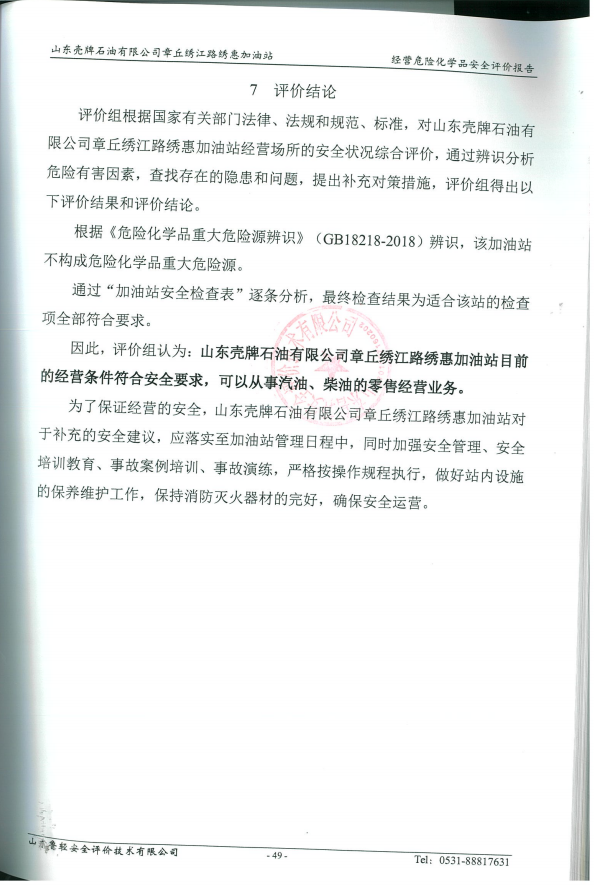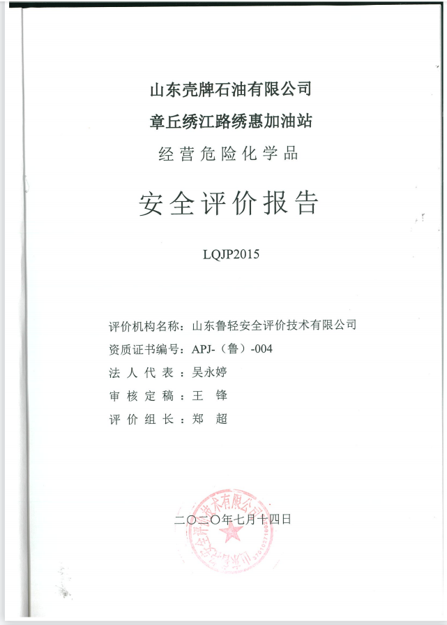 山东壳牌石油有限公司章丘绣江路绣惠加油站经营危险化学品安全评价报告
