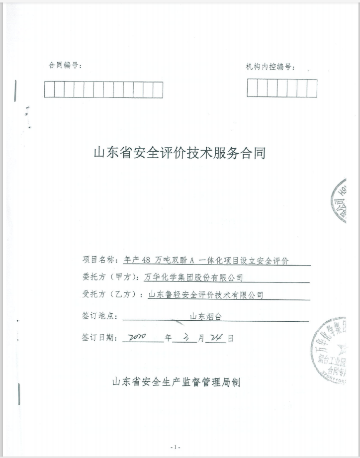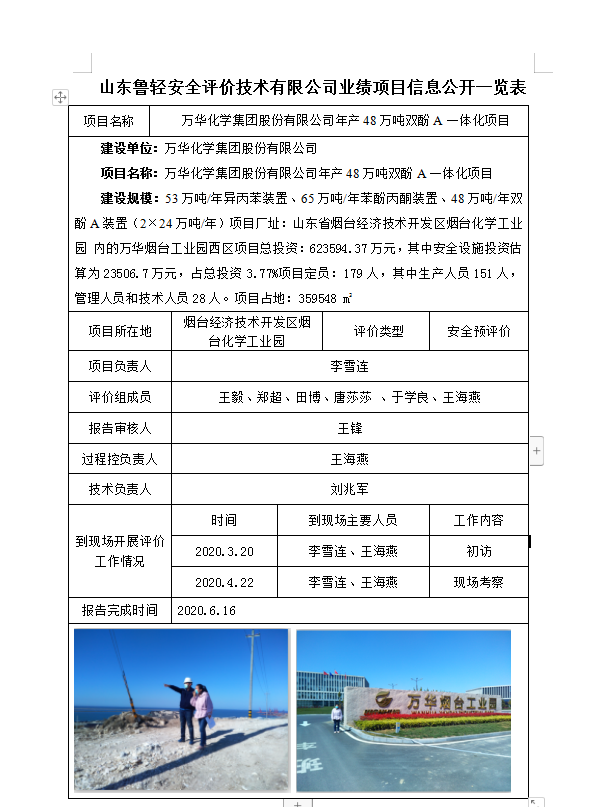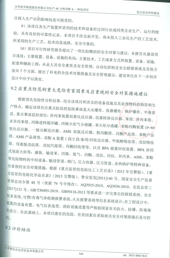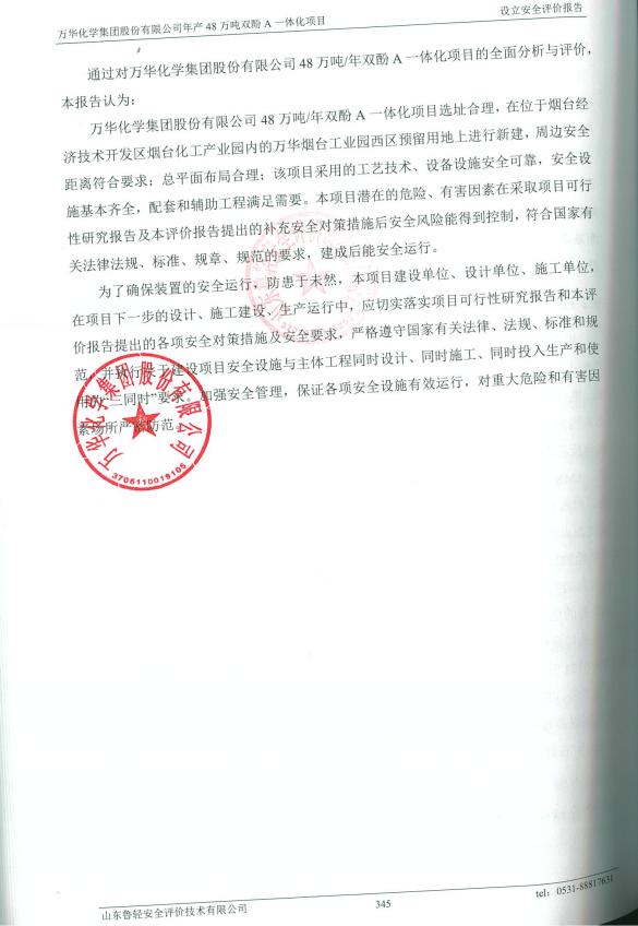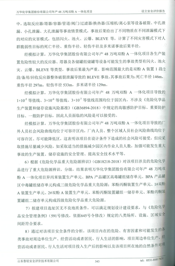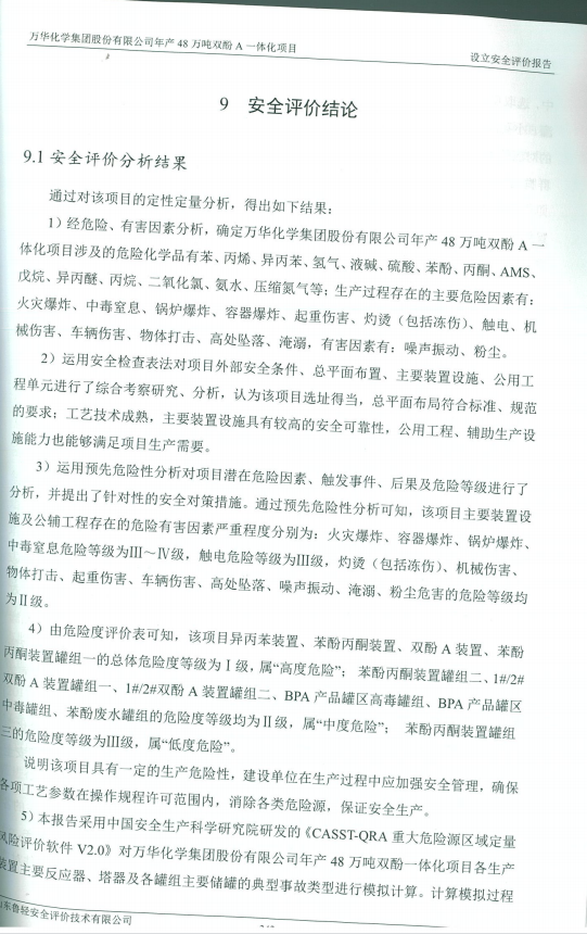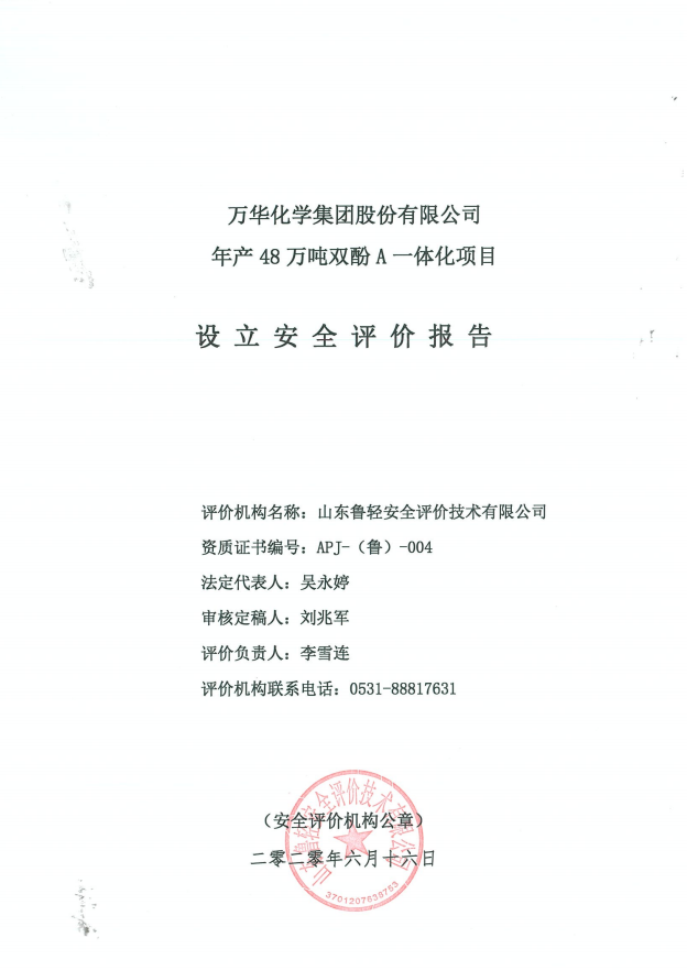 万华化学集团股份有限公司年产48万吨双酚A一体化项目设立安全评价报告