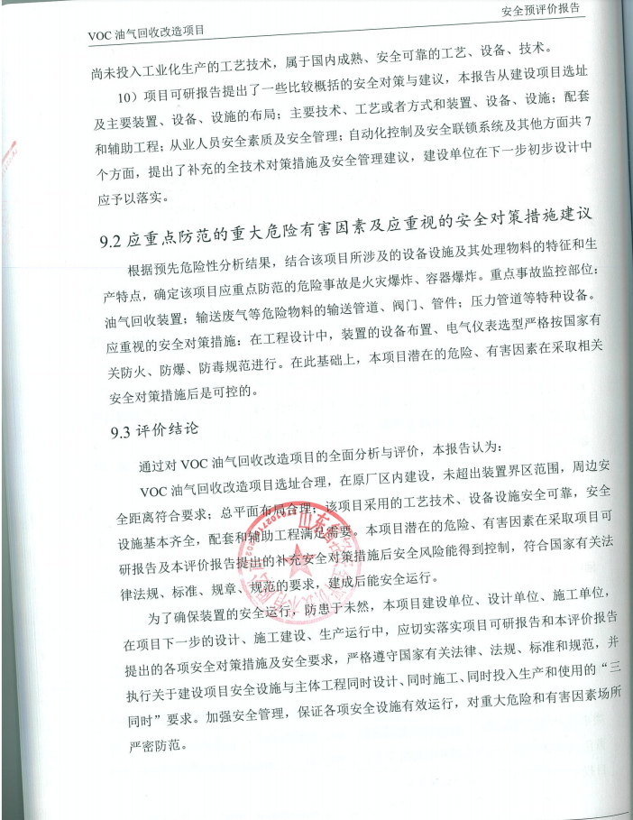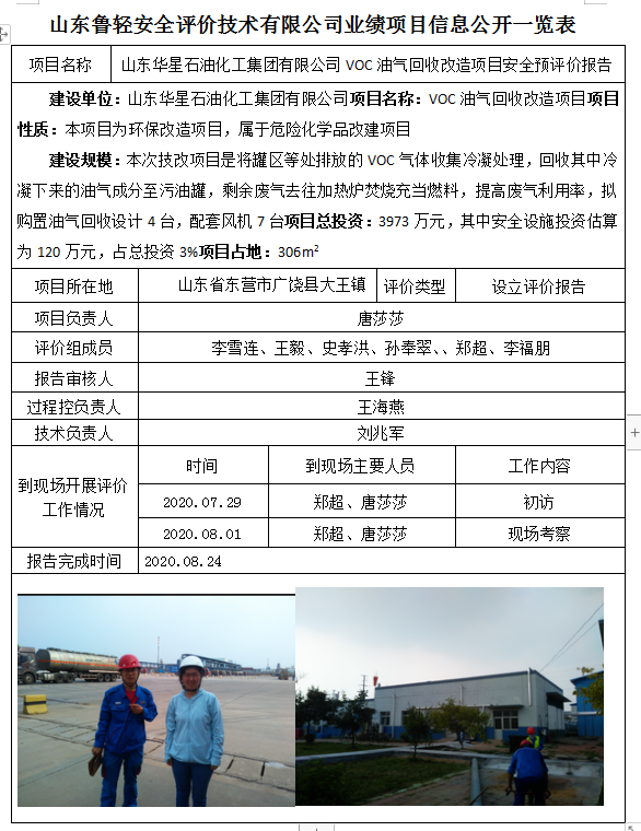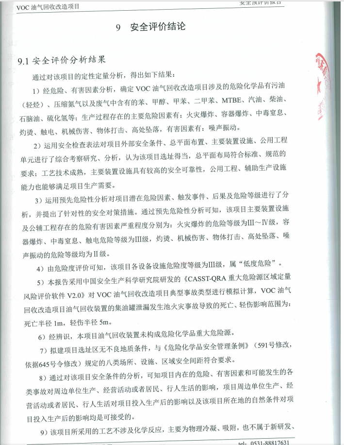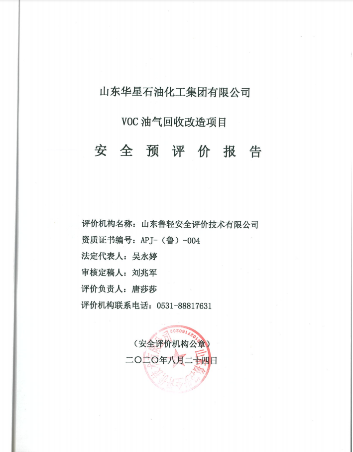 山东华星石油化工集团有限公司VOC油气回收改造项目安全预评价报告