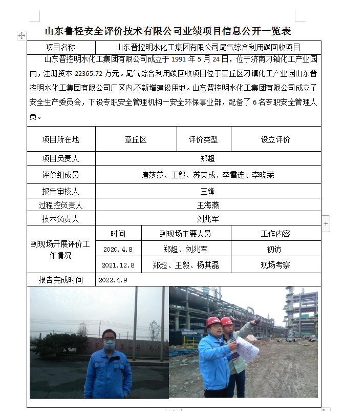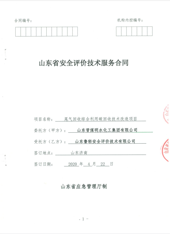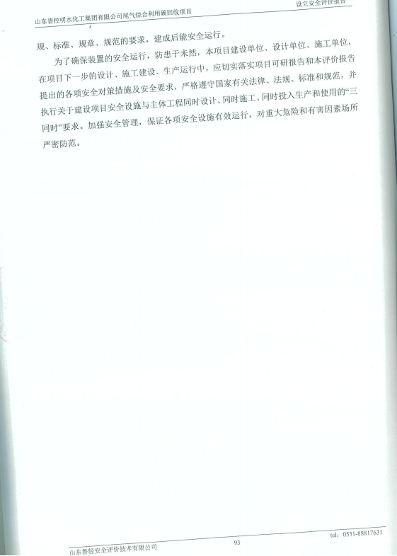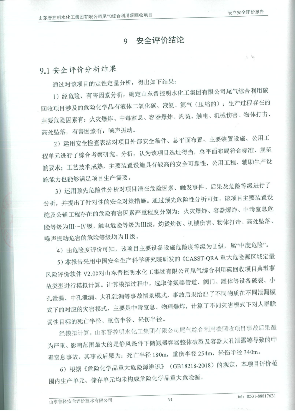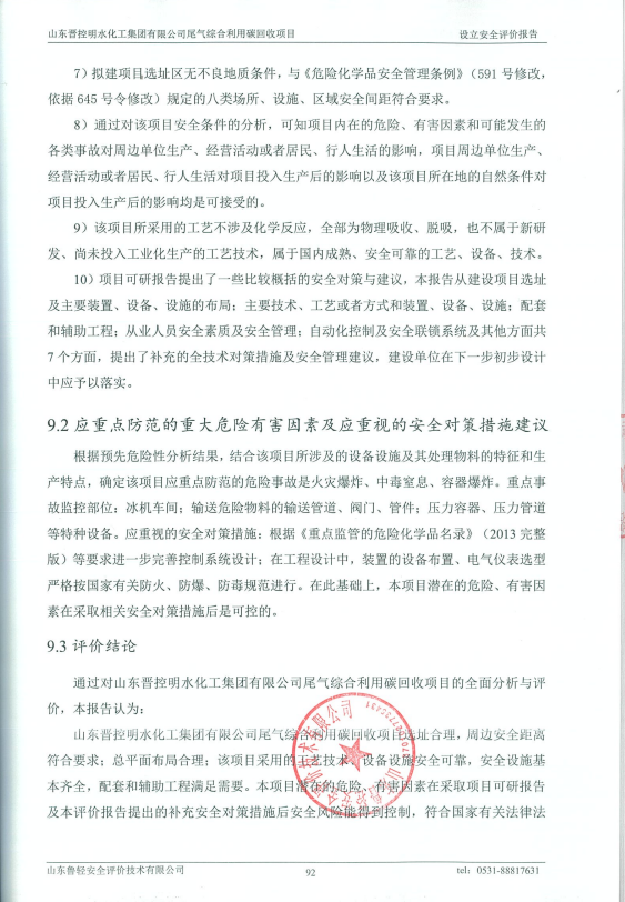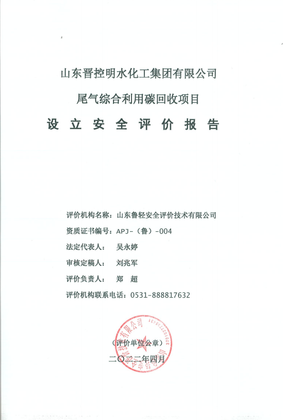 山东晋控明水化工集团有限公司尾气综合利用碳回收项目