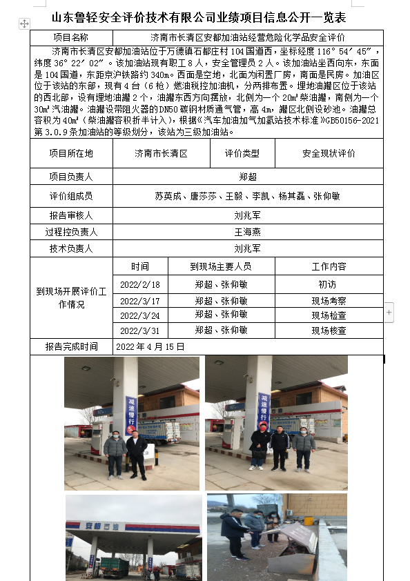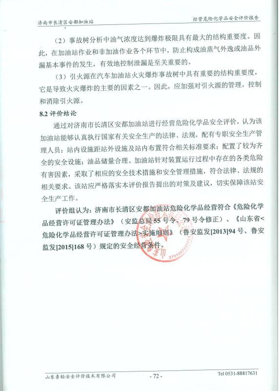 济南市长清区安都加油站经营危险化学品安全评价