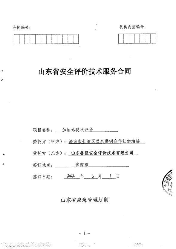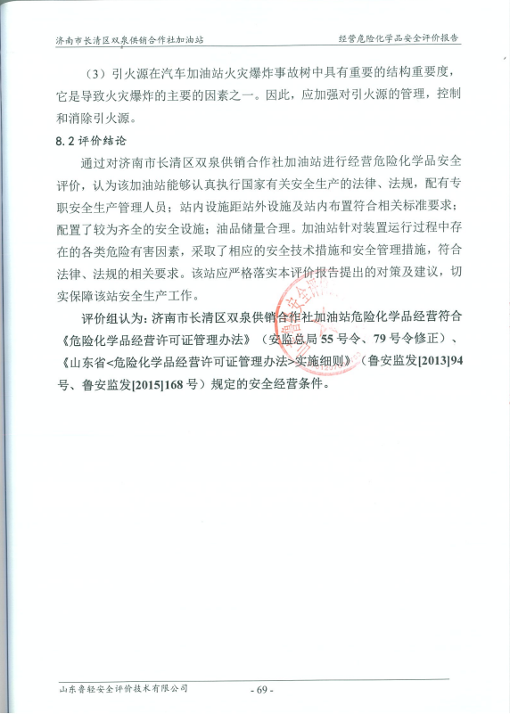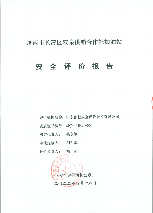 济南市长清区双泉供销合作社加油站经营危险化学品安全评价