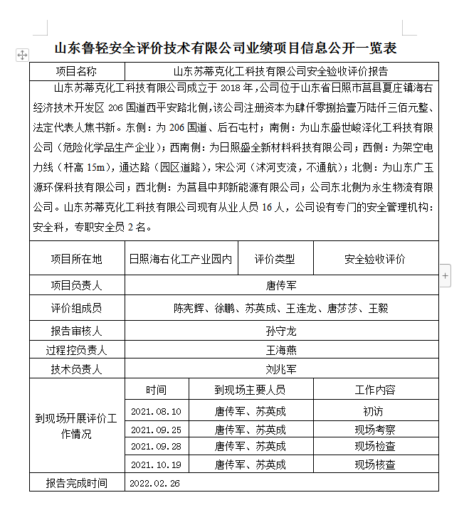 山东苏蒂克化工科技有限公司安全验收评价报告
