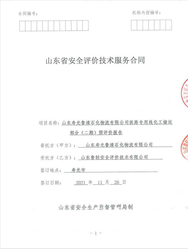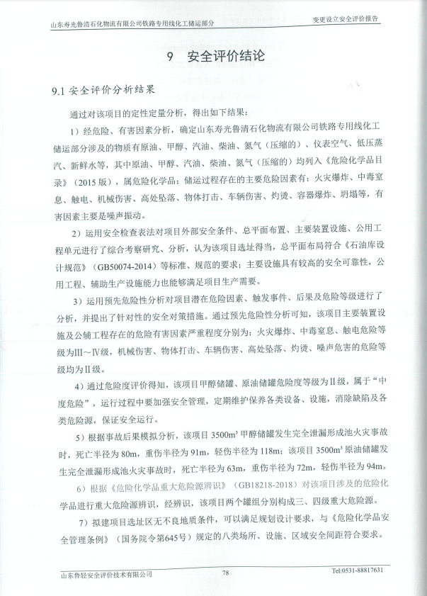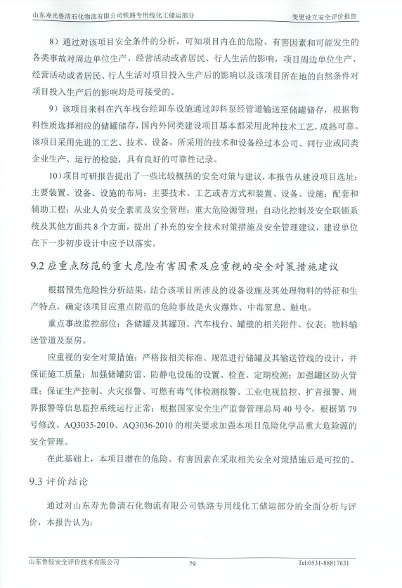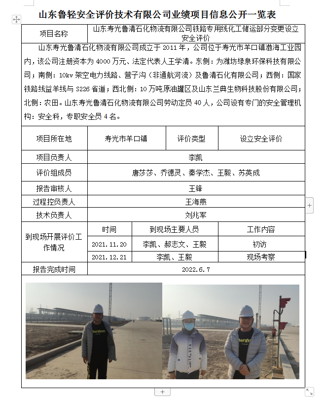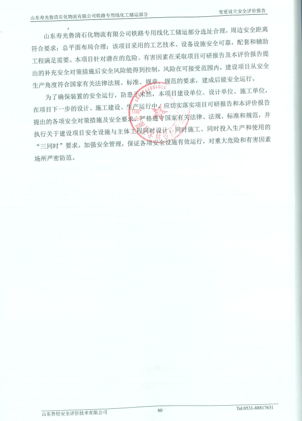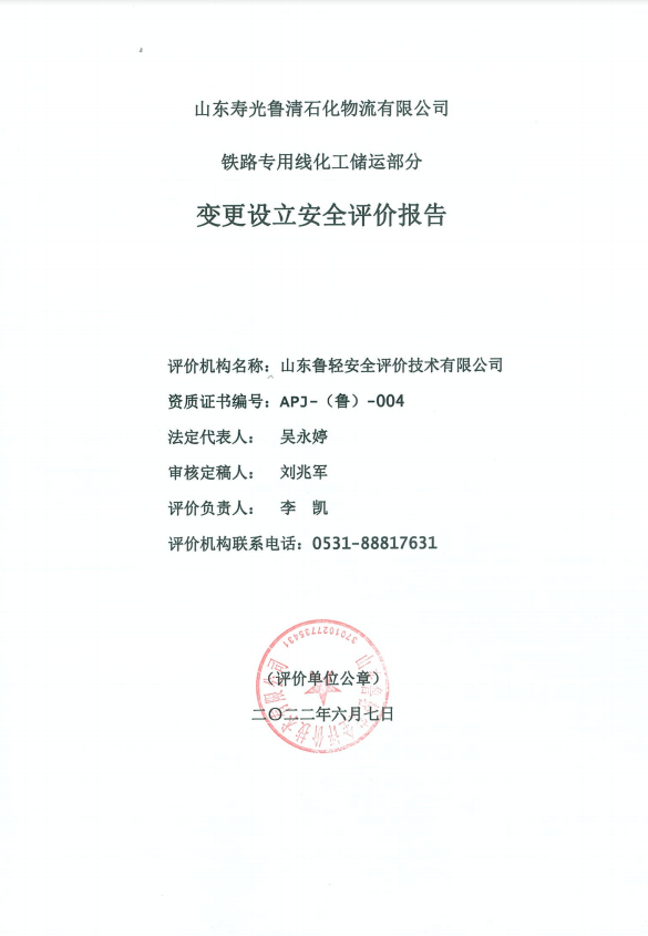 山东寿光鲁清石化物流有限公司铁路专用线化工储运部分变更设立安全评价