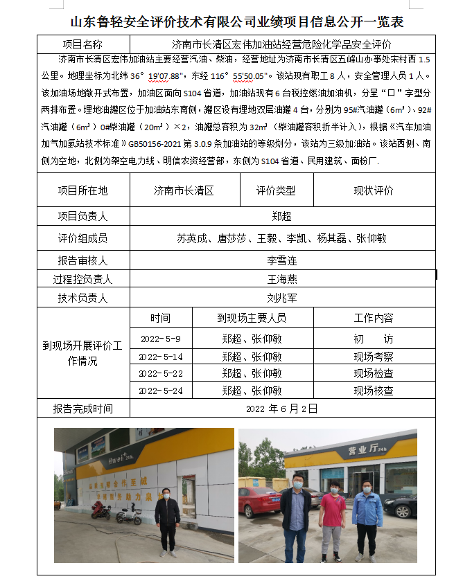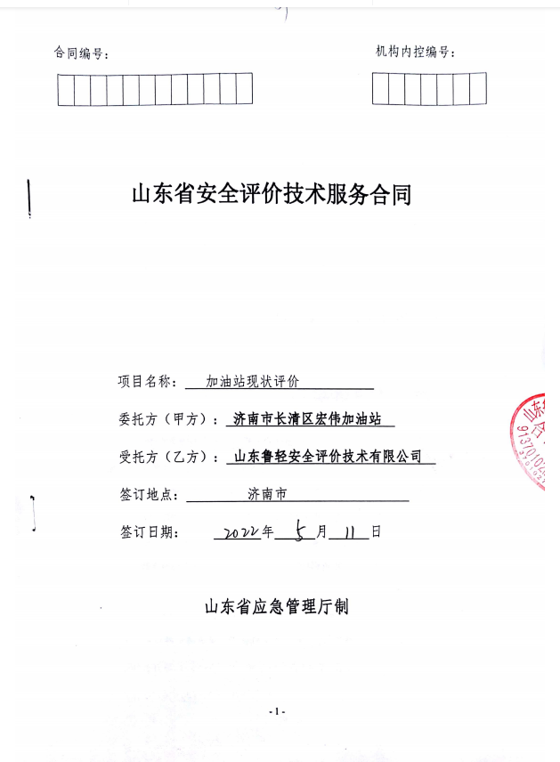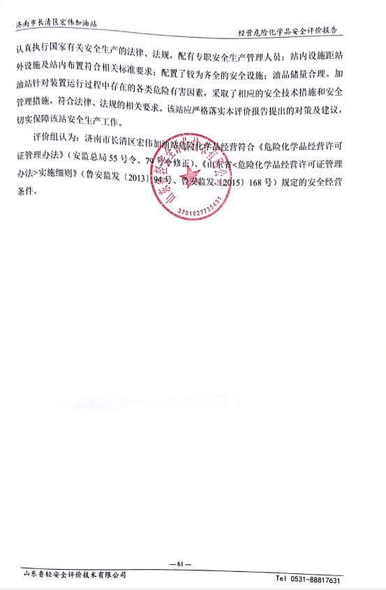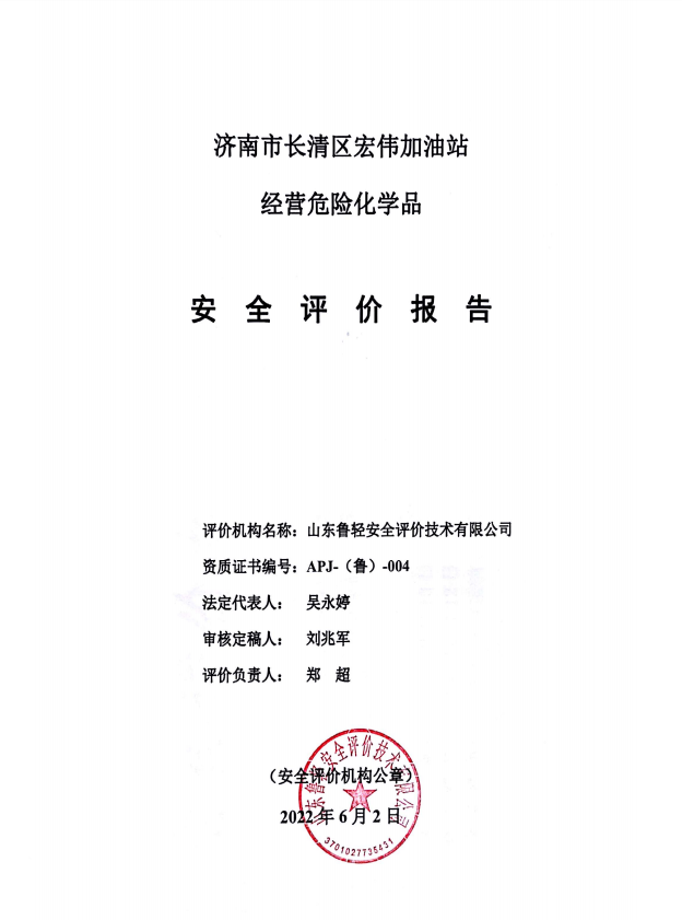 济南市长清区宏伟加油站经营危险化学品安全评价