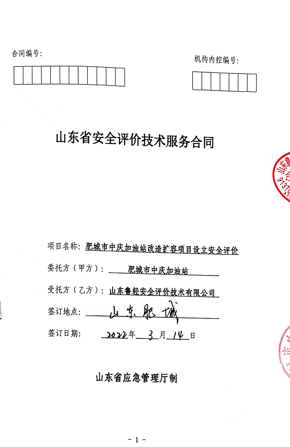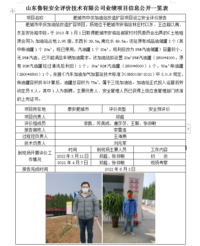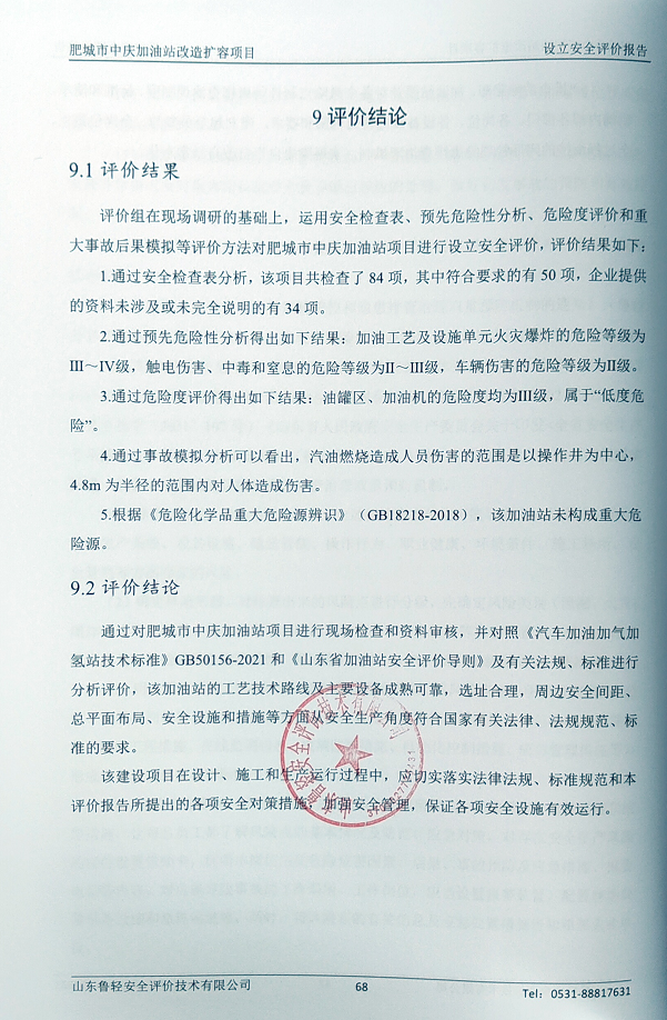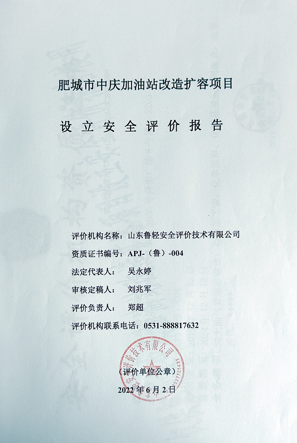 肥城市中庆加油站改造扩容项目设立安全评价报告
